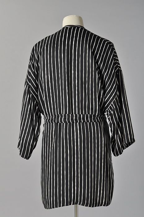 Zwarte herenbadjas "HOM", met witte lengtestreep en ...