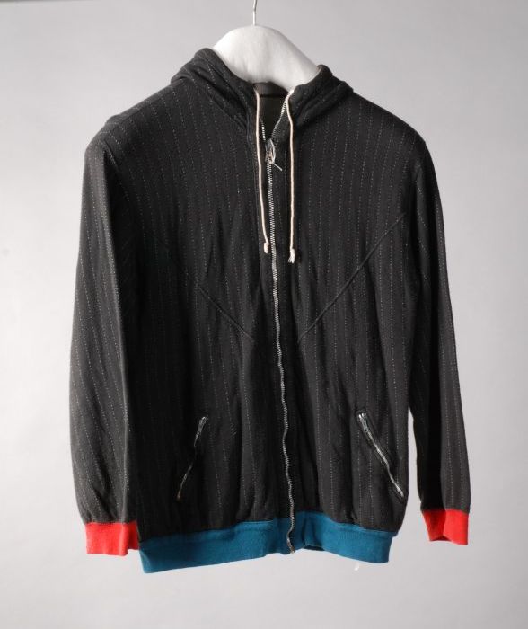 Zwarte sweater, blauw afgebiesd, met doorlopende rit...