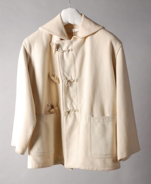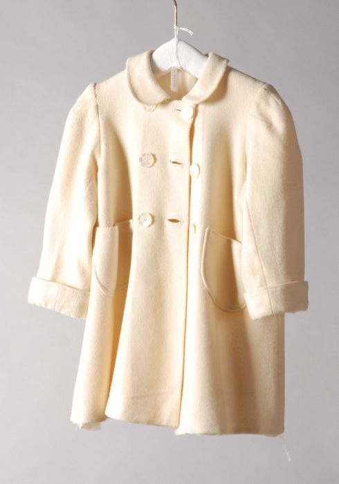 Crèmekleurige babyjas, gerend model met dubbele knoo...