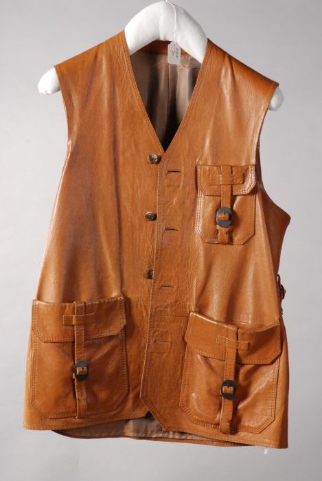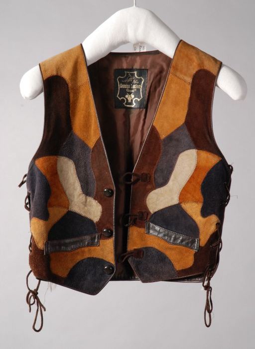 Gilet van suède lapjes in diverse kleuren, met houtj...