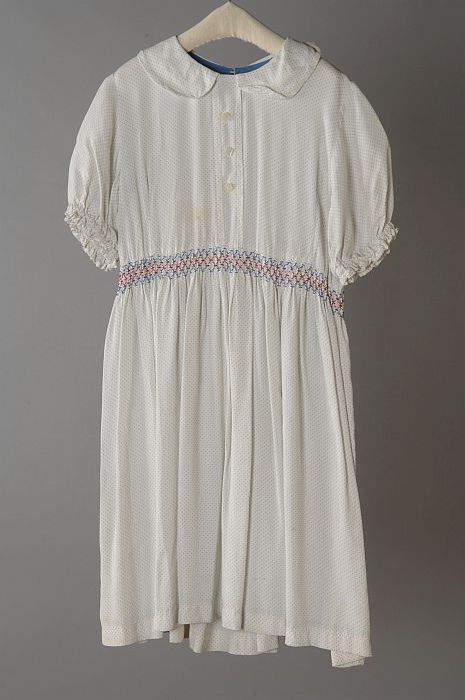 Kinderjurk van ecrukleurige mousseline en met veelkl...