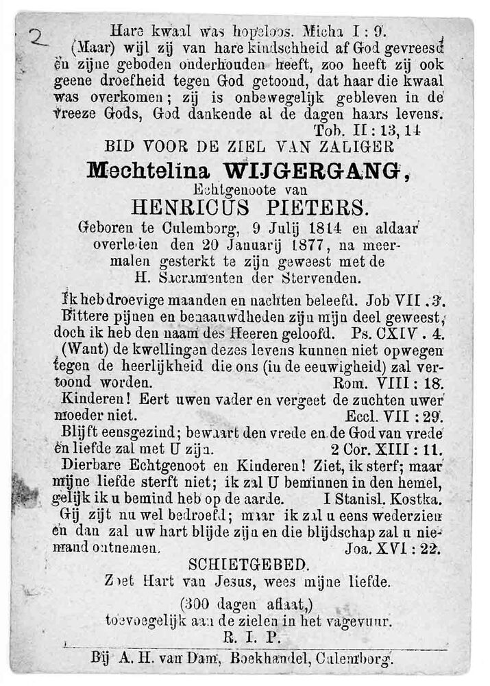 bidprent voor Mechtelina Wijgergang. Geboren 09-07-1...