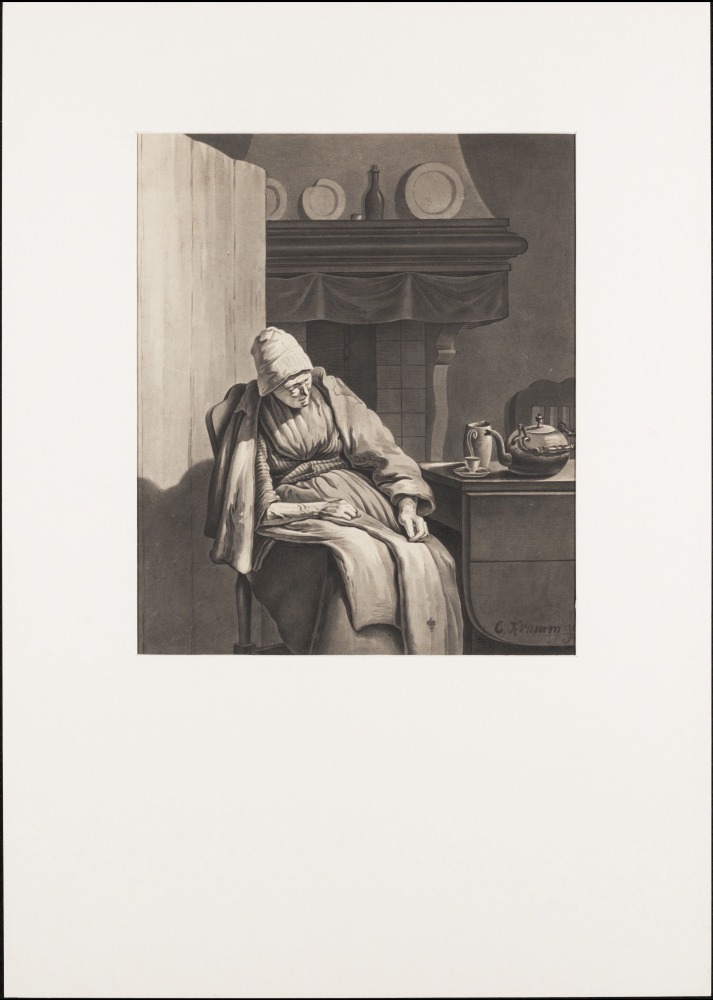 Zittende vrouw met Friese hoofdtooi