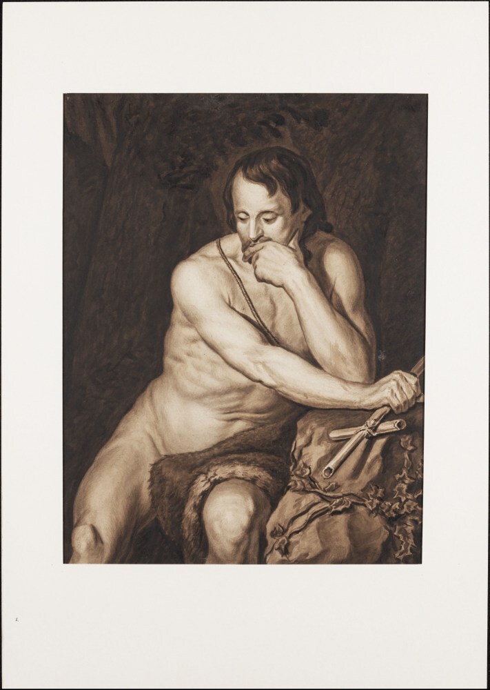 Kop van een man; verso: studie van een mannelijk naakt