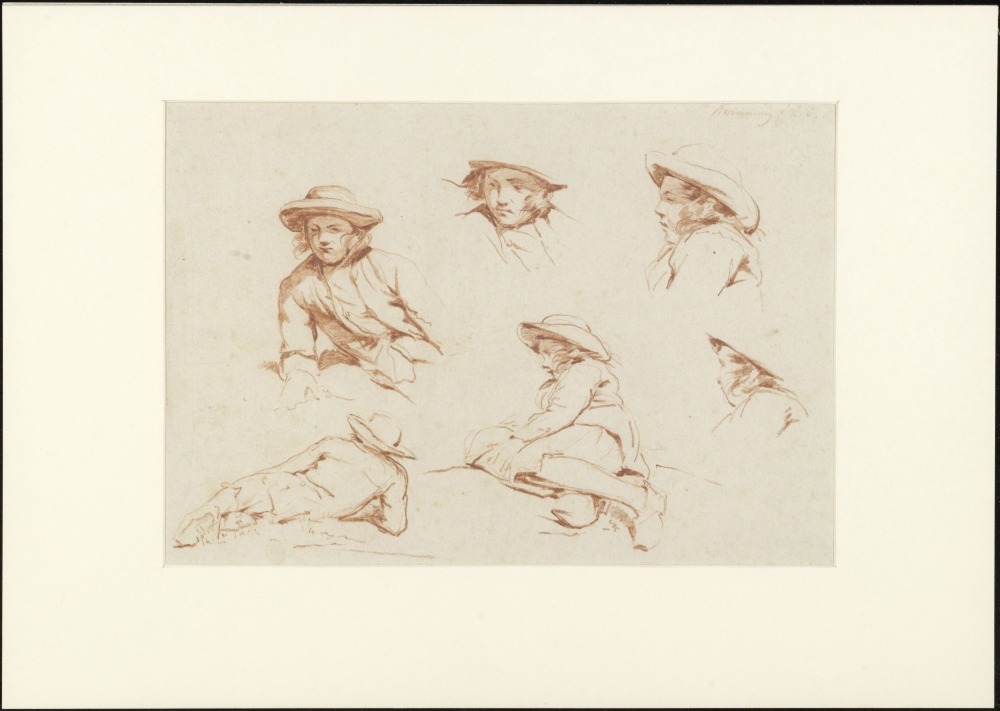 Studieblad met schetsen van een jongen met hoed