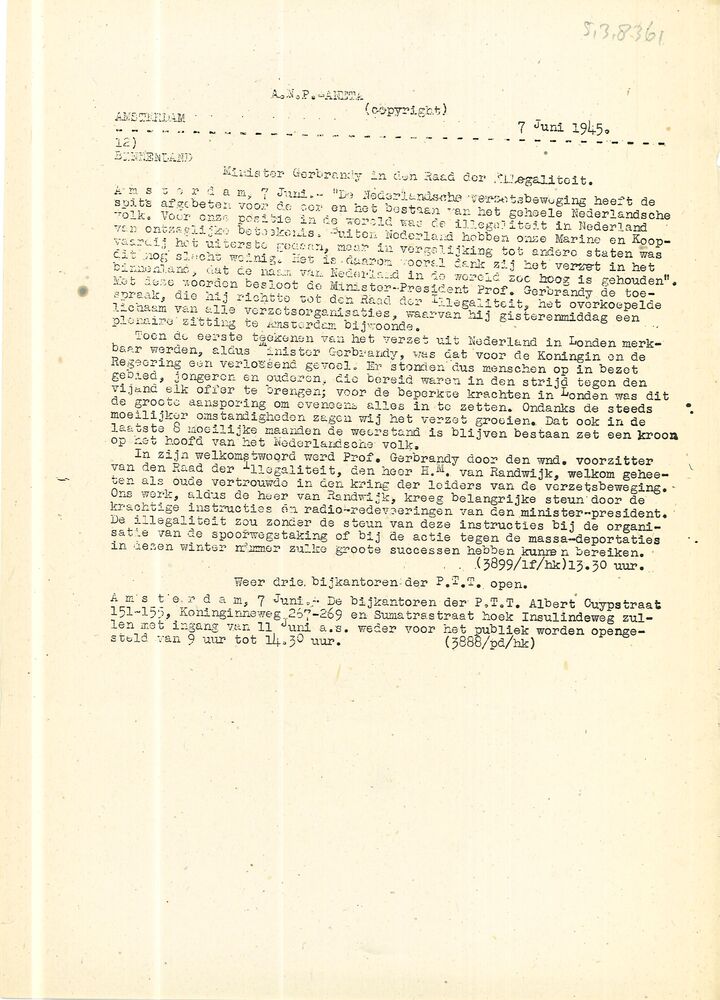 Vel: Algemeen Nederlandsch Persbureau, mededelingen,...