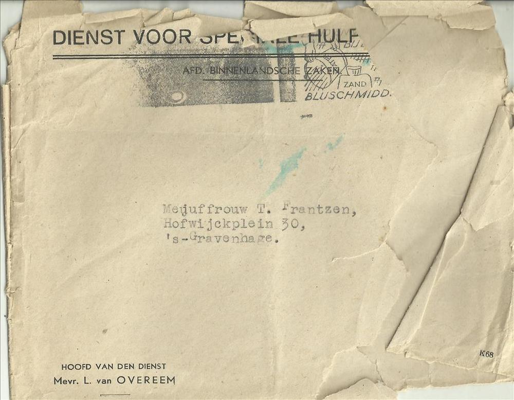 Envelop van een brief "An Frau Teuert Deutsche Diens...