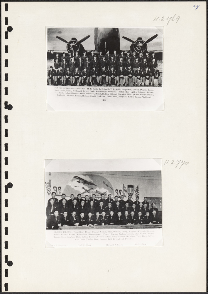 Groepsfoto van Amerikaanse zweefvliegtuigpiloten voo...