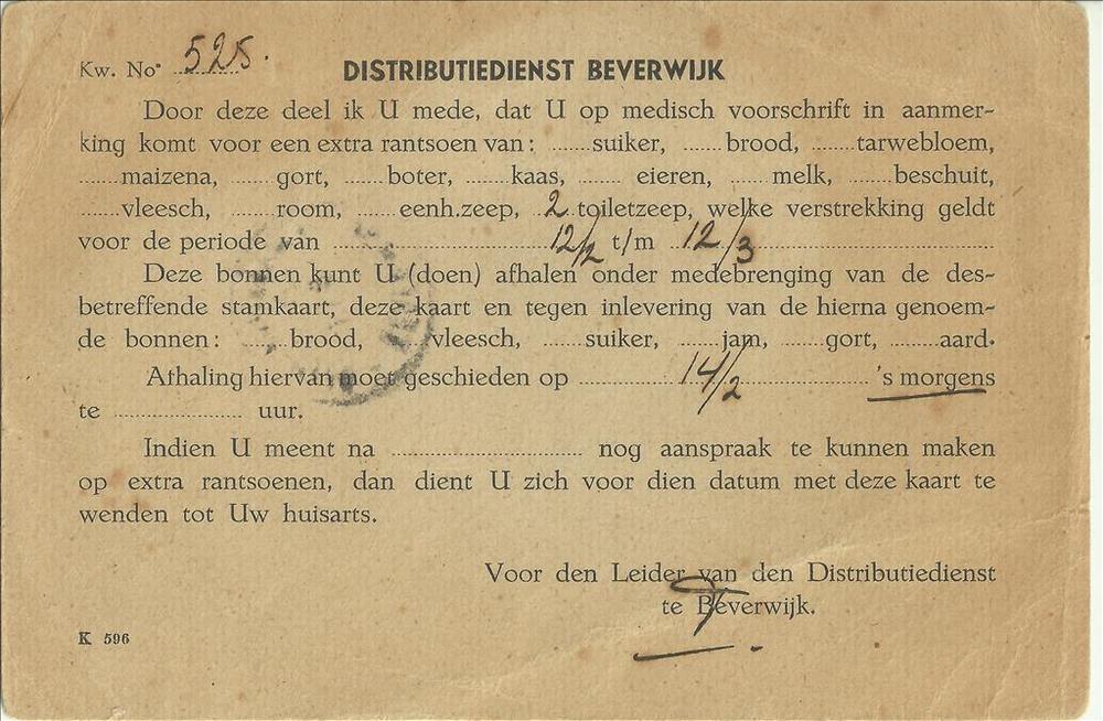 Tweede Distributiestamkaart op naam van : Maas, Wilh...