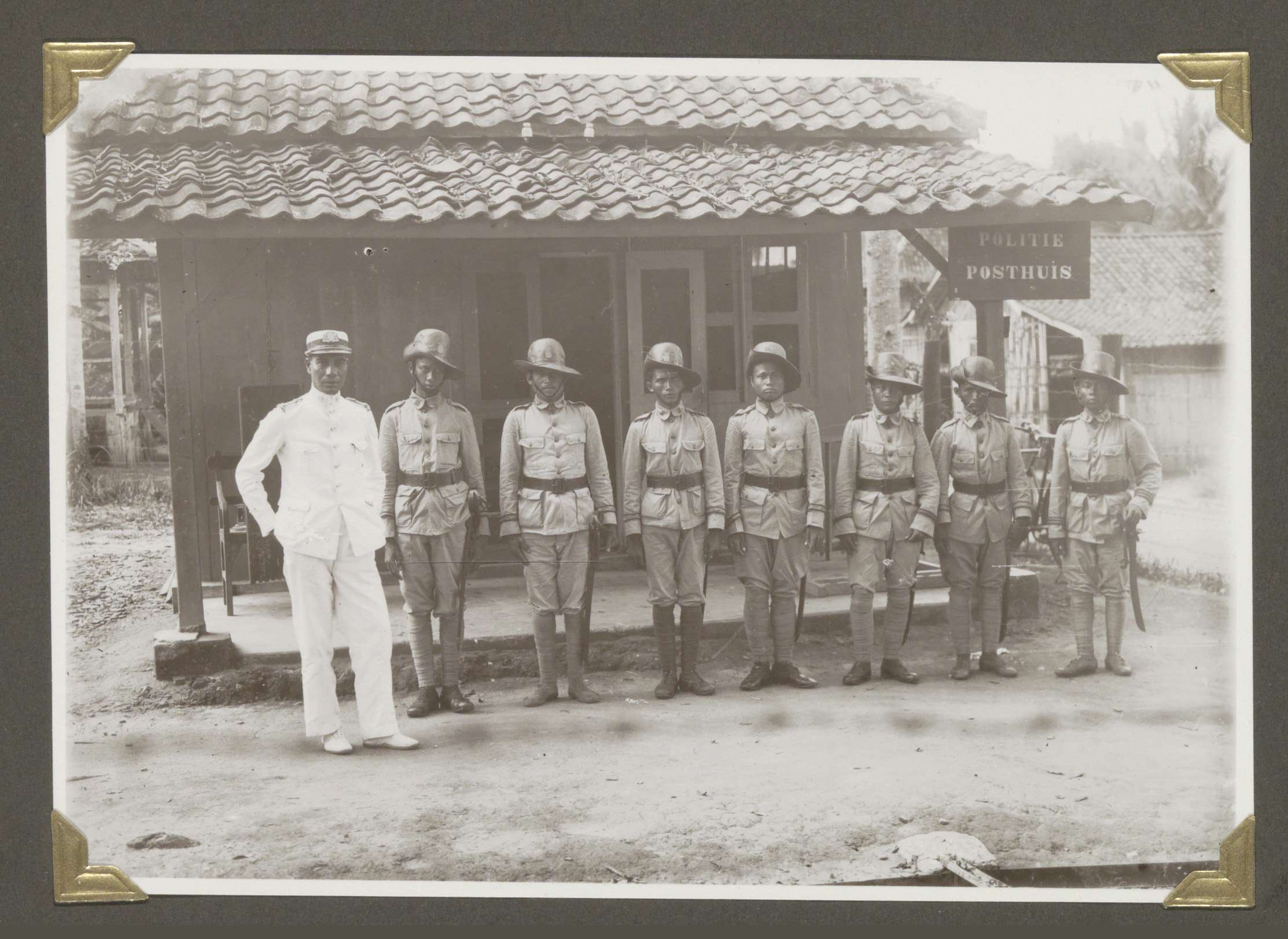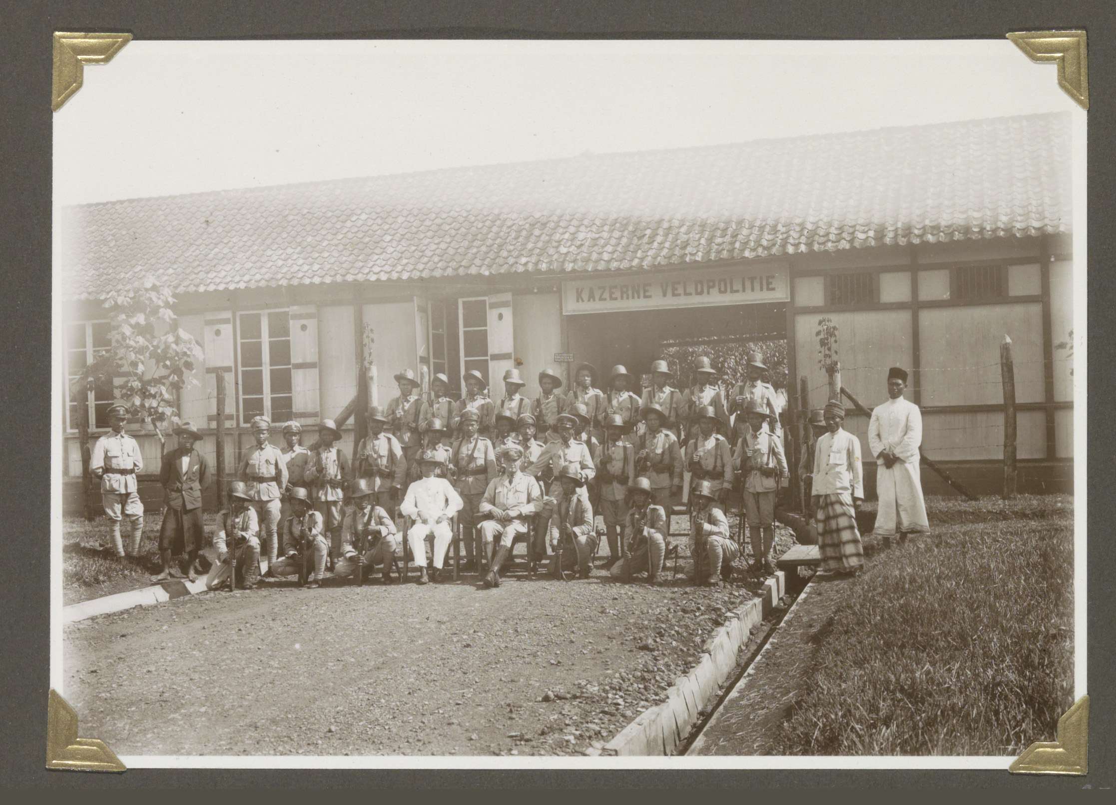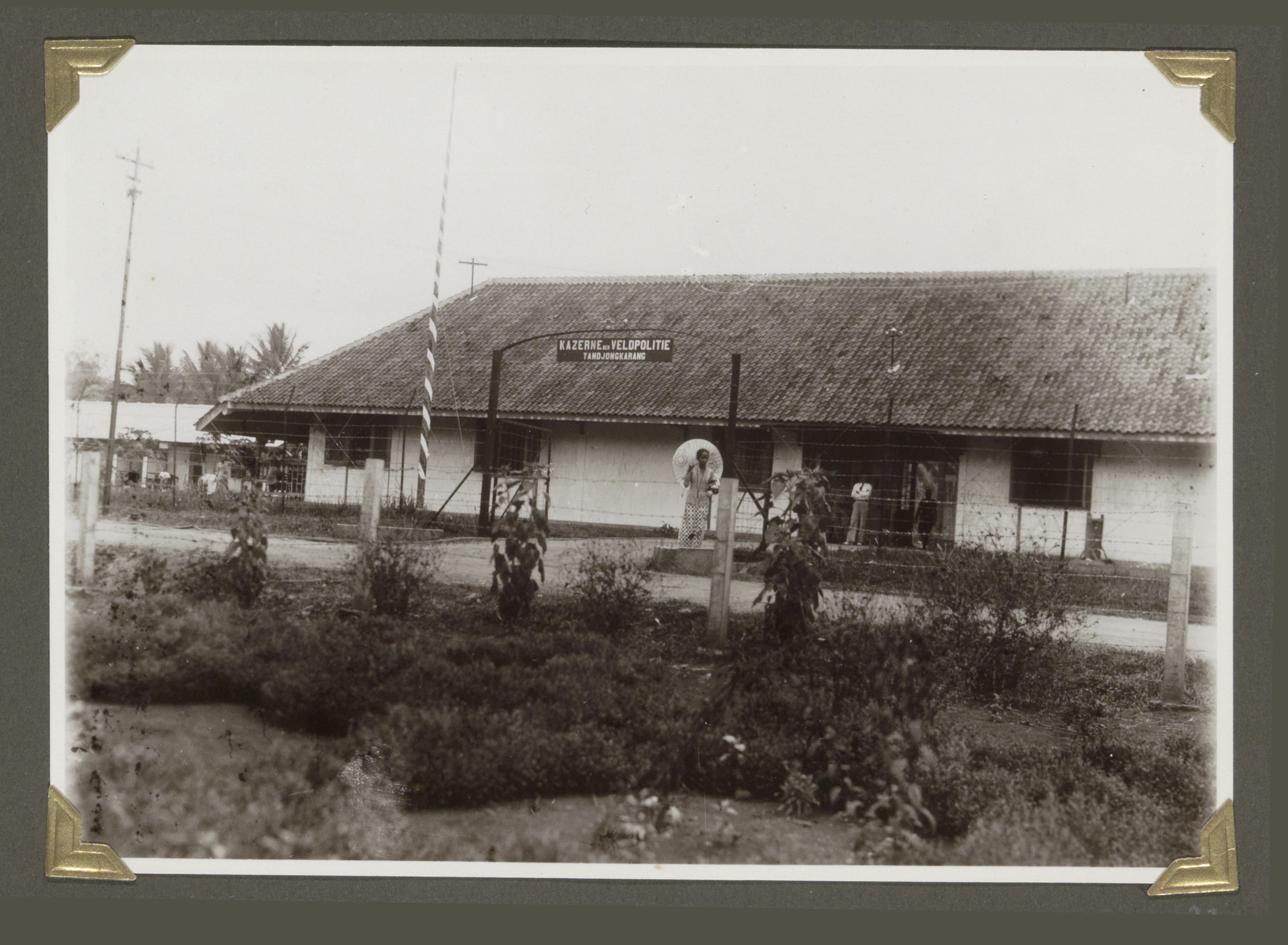 Ingang van de kazerne van de veldpolitie te Tandjong...