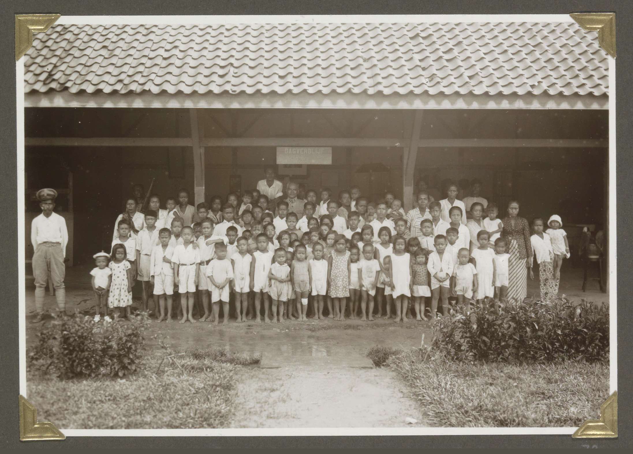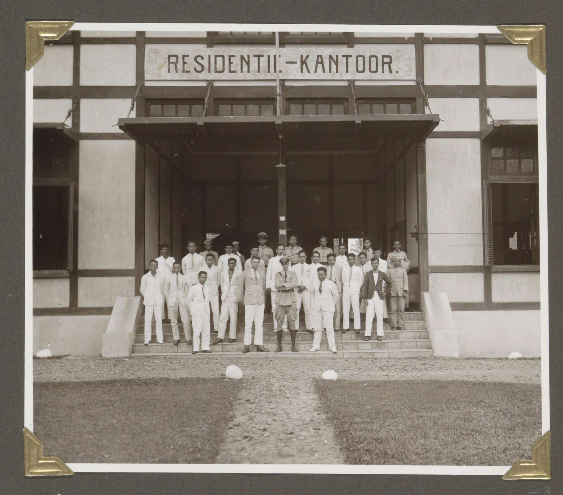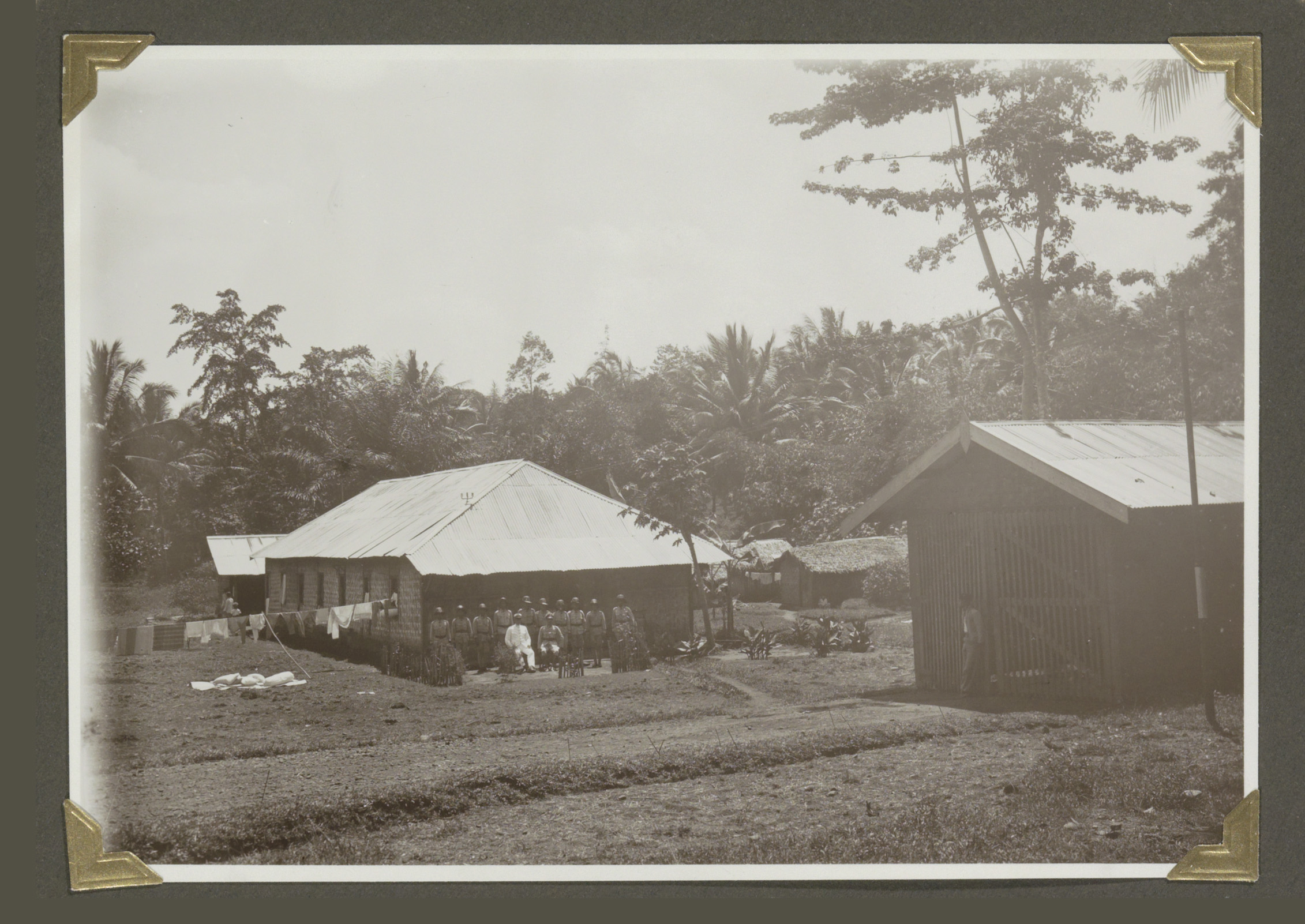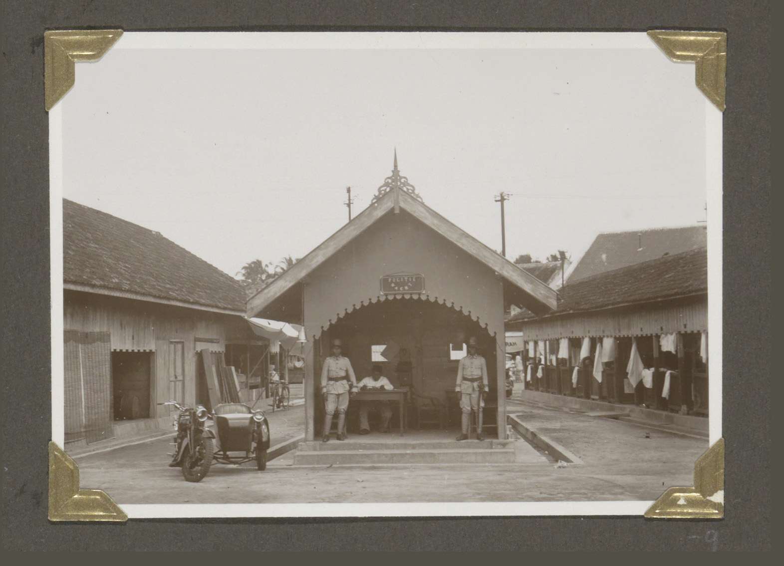 Ingang van de kazerne van de veldpolitie te Tandjong...
