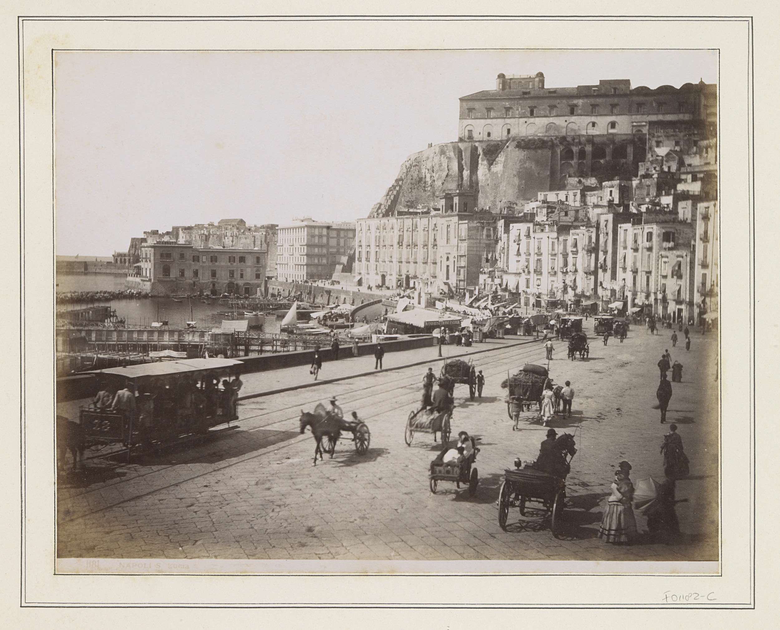 Gezicht op Napels met aan de horizon de Vesuvius