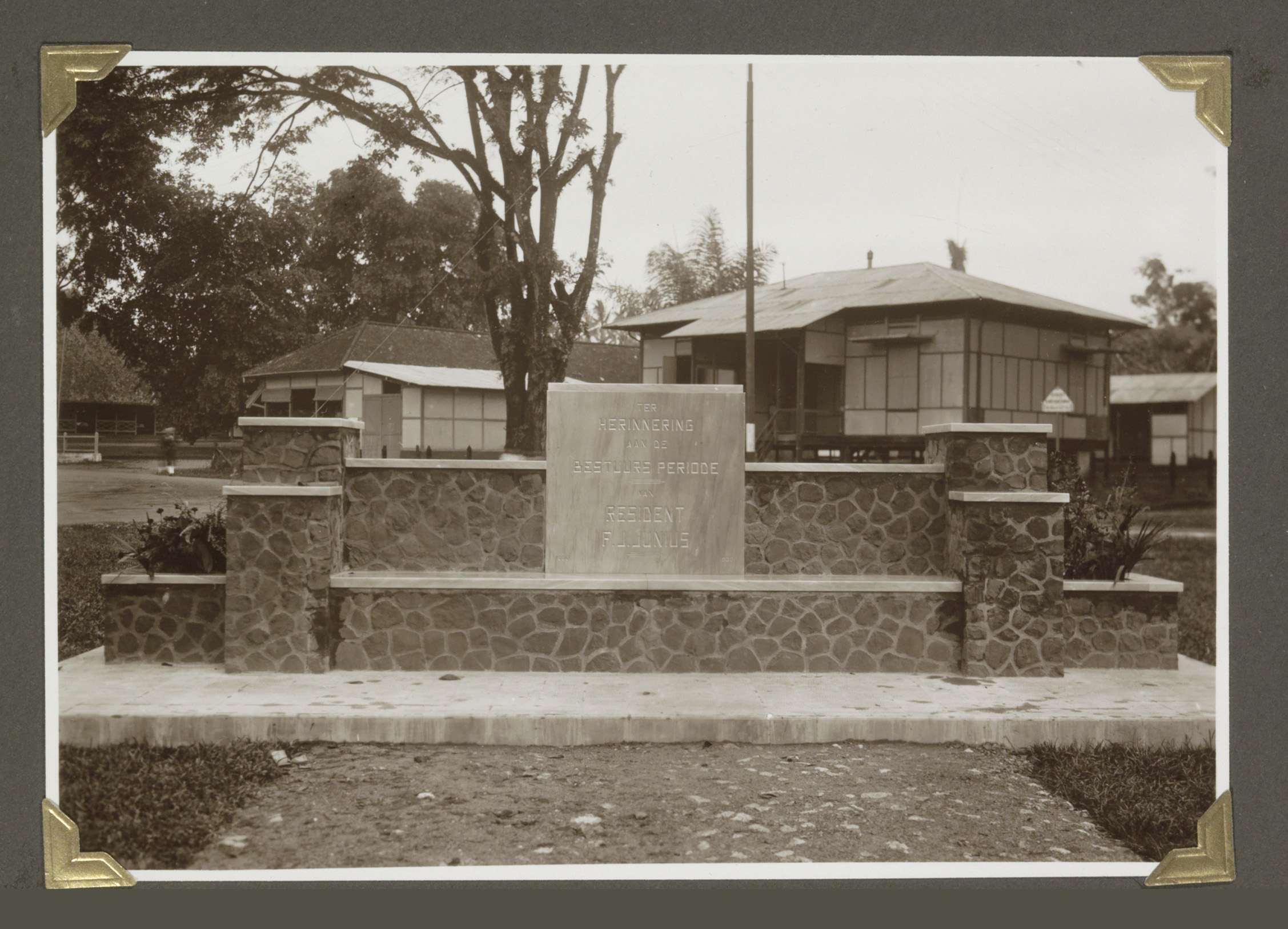 Junius-bank met plaquette in Tandjongkarang (Zuid-Su...