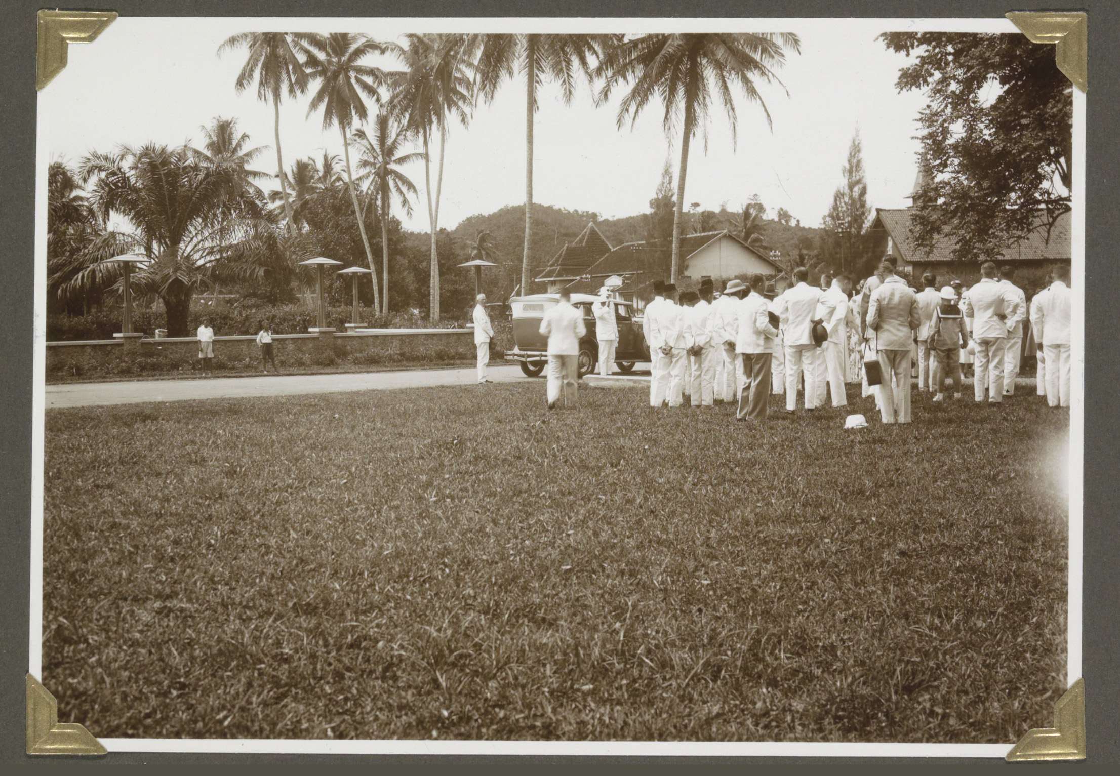 Aankomst van resident F.J. Junius bij de onthulling ...