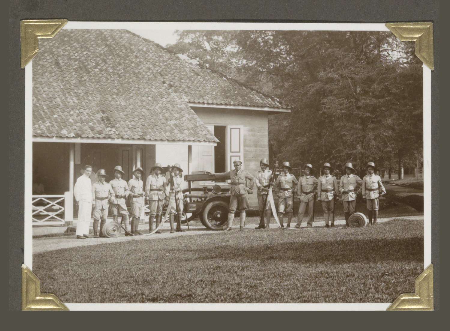 Groepsportret van leden van de brandweerpolitie in K...