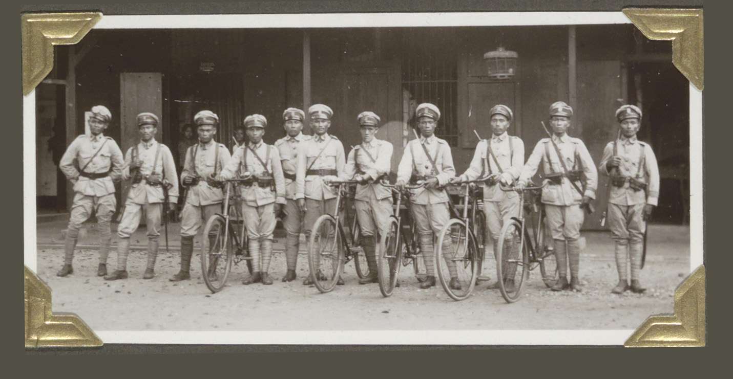 Agenten van de veldpolitie in Lampong tijdens het kl...