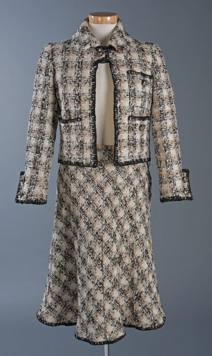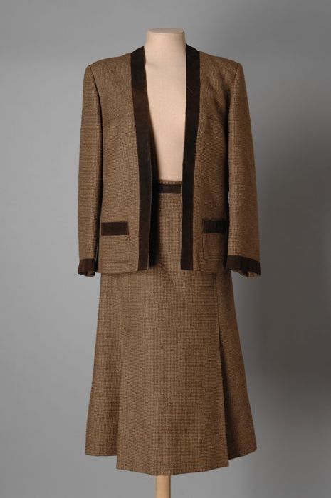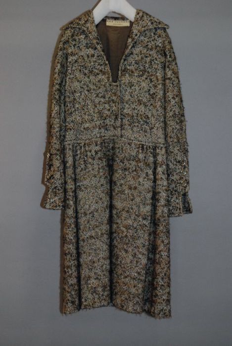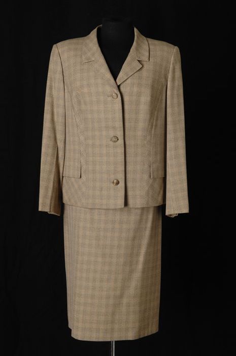 Rok, jas en blouse, bruin / ecru gemêleerd