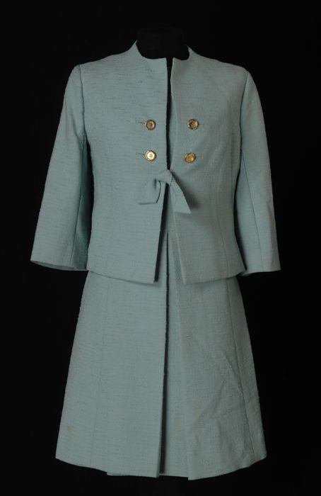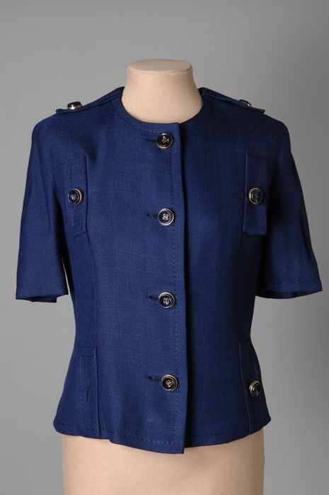Blauw jasje met korte mouw en grote knopen