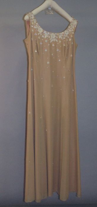 Avondensemble bestaande uit beige/goudkleurige uni a...