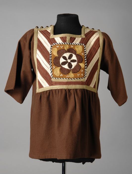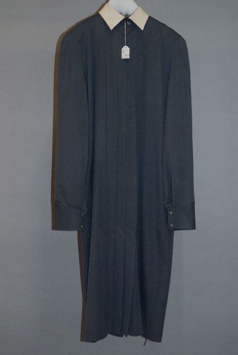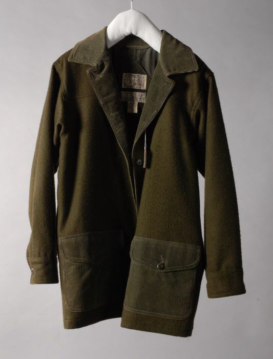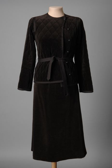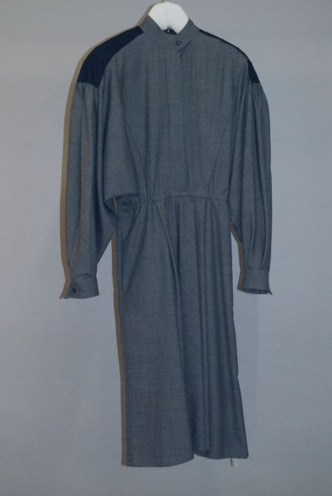 Mantelpakje van grijs flanel met doorgestikte naden