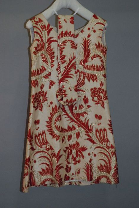 Mouwloze cocktailjapon, rood / goud brokaat