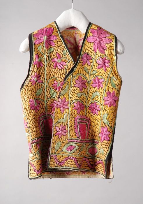 Mouwloos vest, borduursels in roze, oranje en groen ...