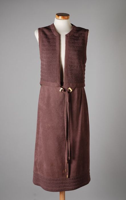 Grijze japon met grijze ceintuur en zwart suède cein...