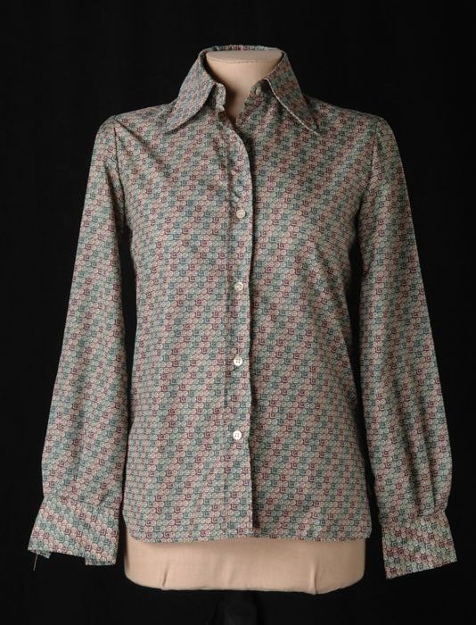 Witte blouse met aan te knopen kraag, afgezet met ro...