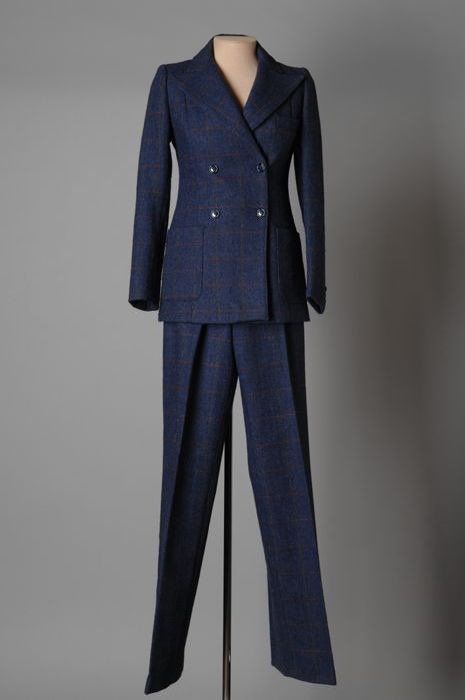 Blauw broekpak met bijpassende ceintuur