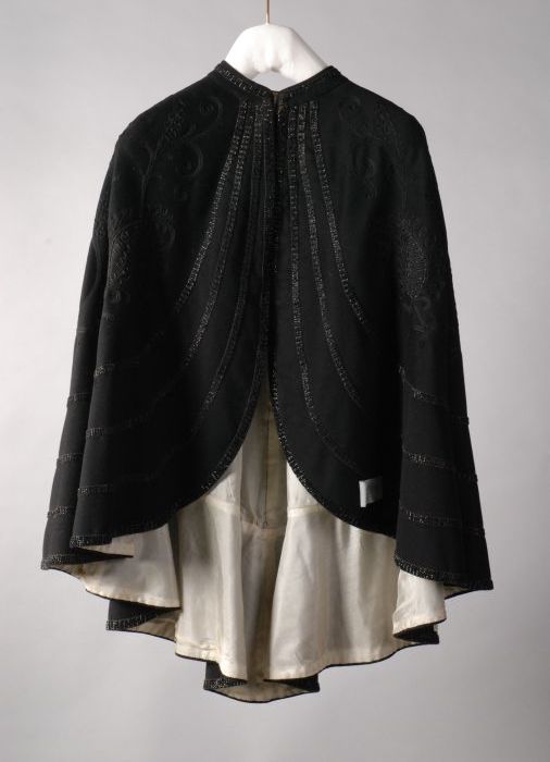 Zwart fluwelen bolero met korte mouwtjes, afgezet me...