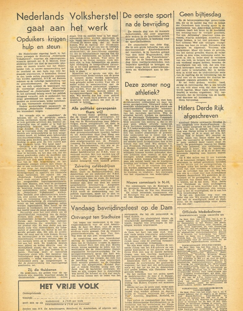 Het Vrije Volk, woensdag 9 mei 1945, eerste jaargang...
