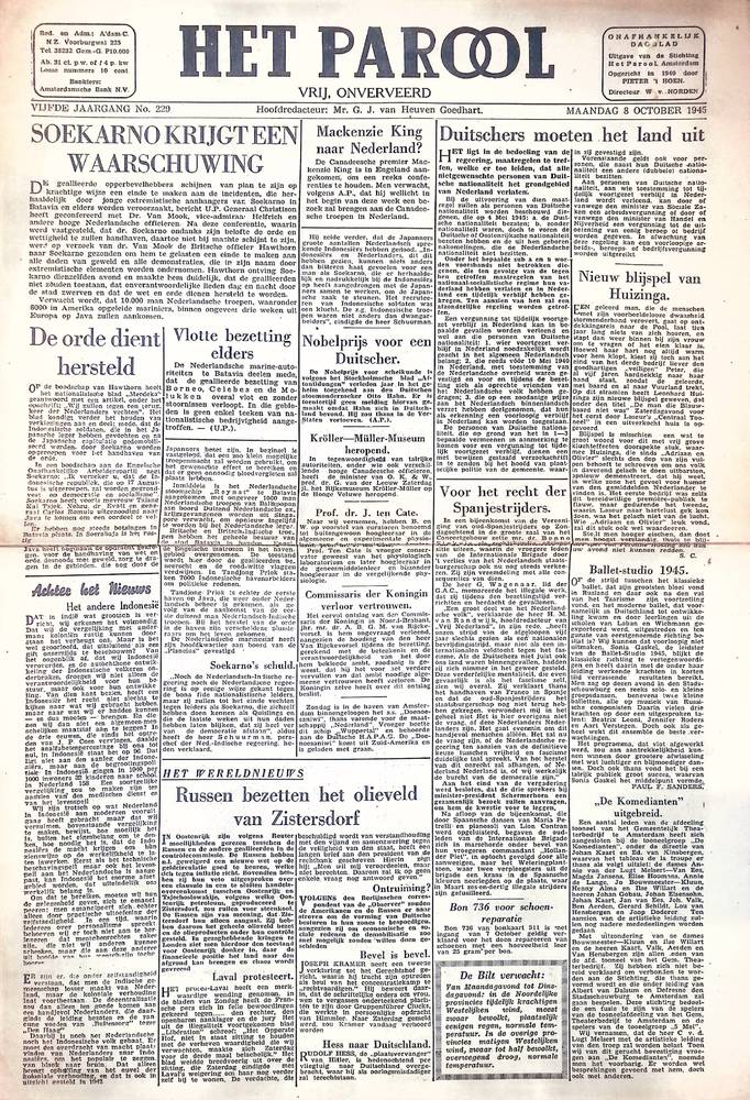 Het Parool, 19 mei 1945, 5e jaargang, No 111