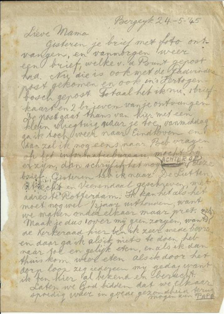 Brief van J. de Jong uit Bergeijk aan de J. de Jong ...