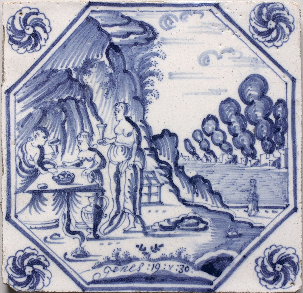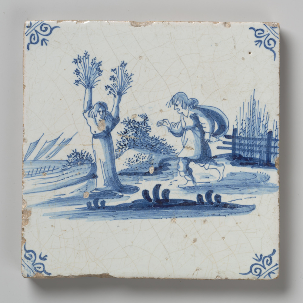 tegel van aardewerk met tinglazuur, voorstellende: A...