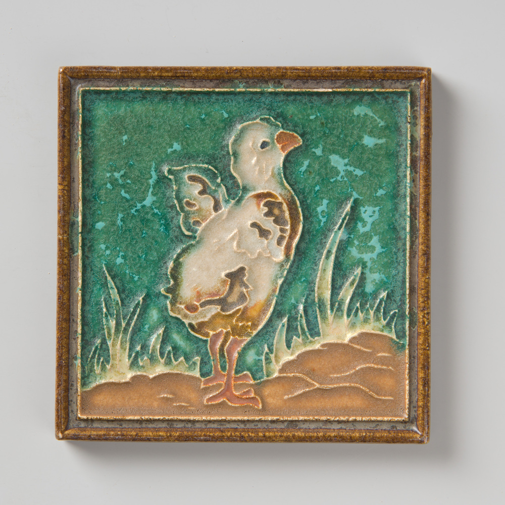 Tegel in cloisonné-techniek, met voorstelling: Kuike...