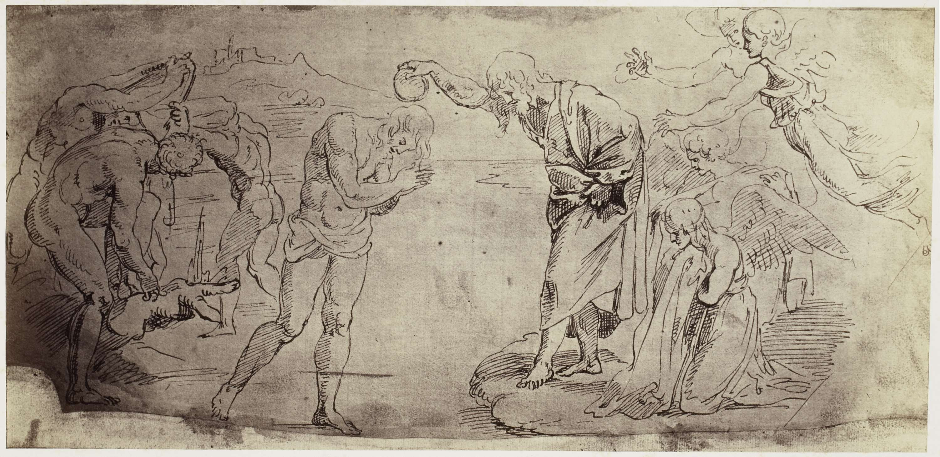 Fotoreproductie van een tekening van Rafaël, doop va...
