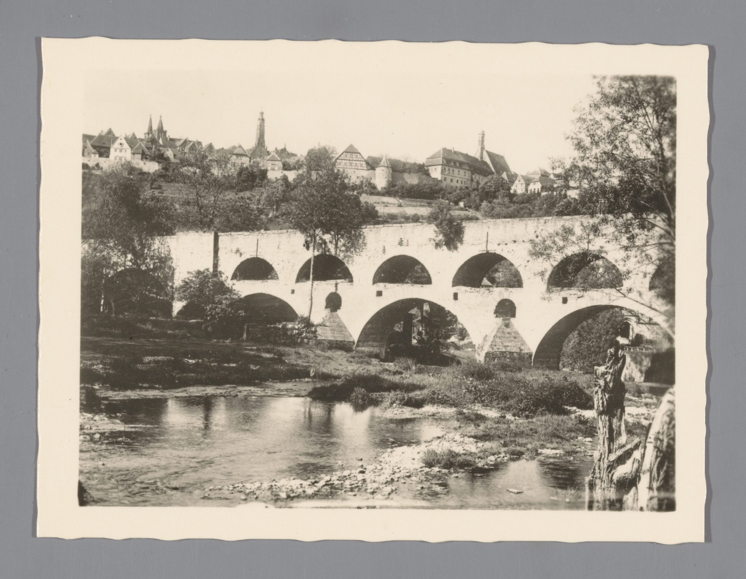 Gezicht op de Tauberbrücke in Rothenburg ob der Tauber