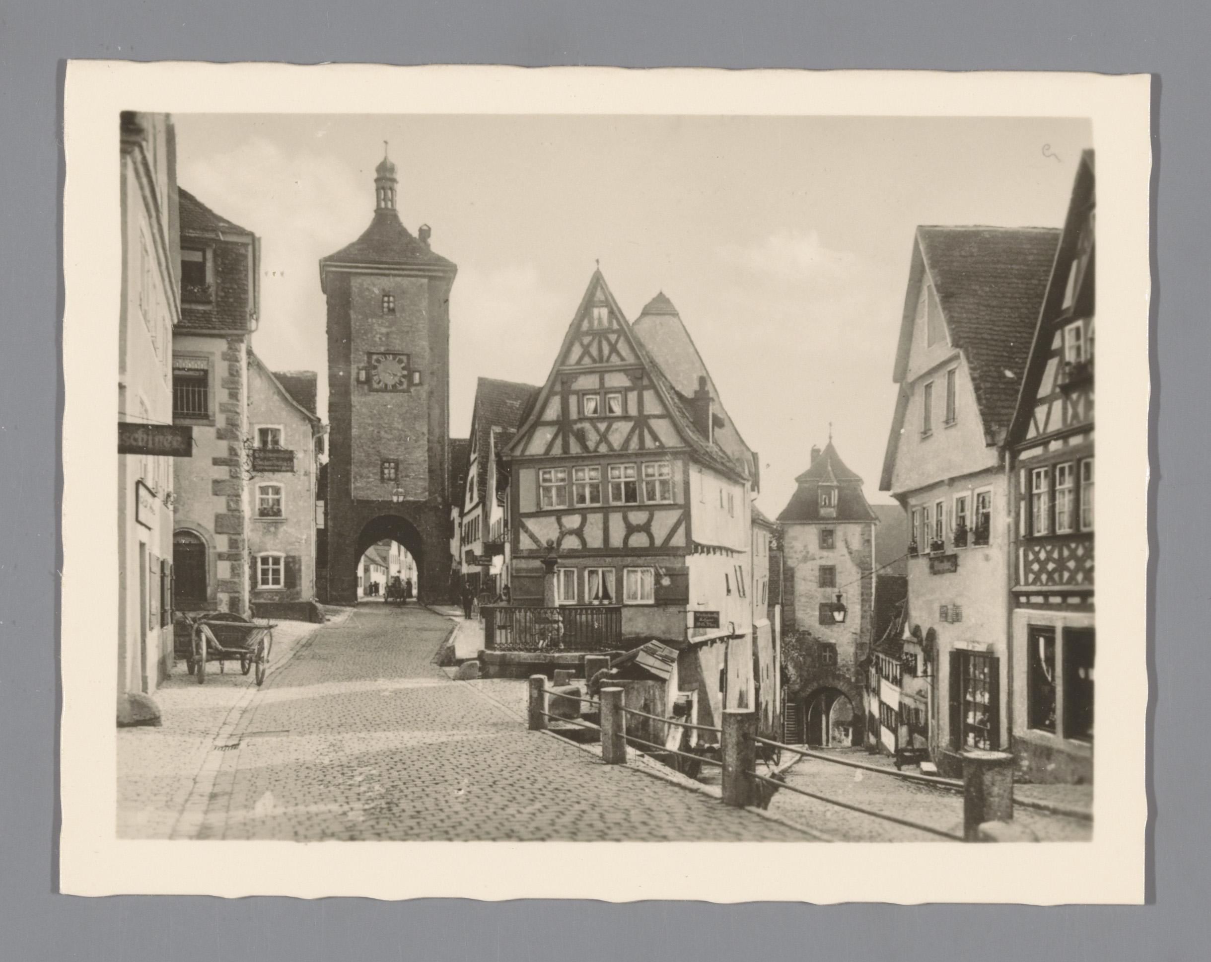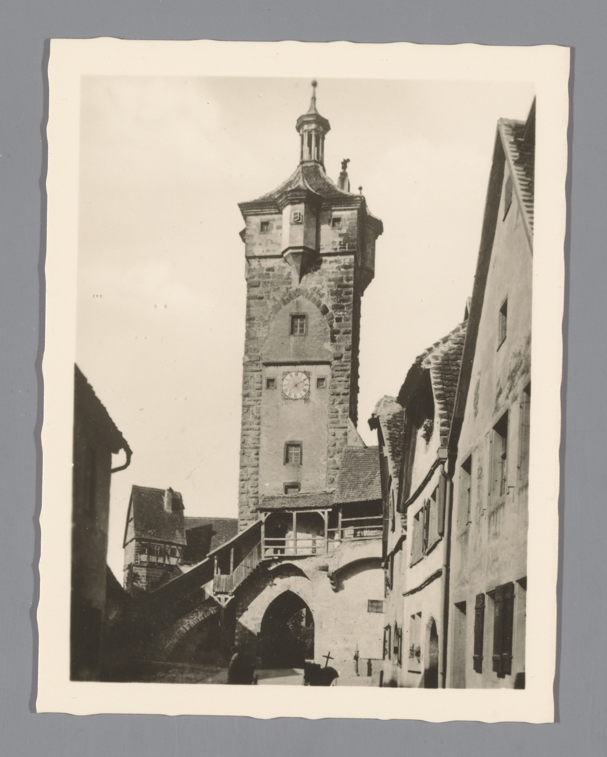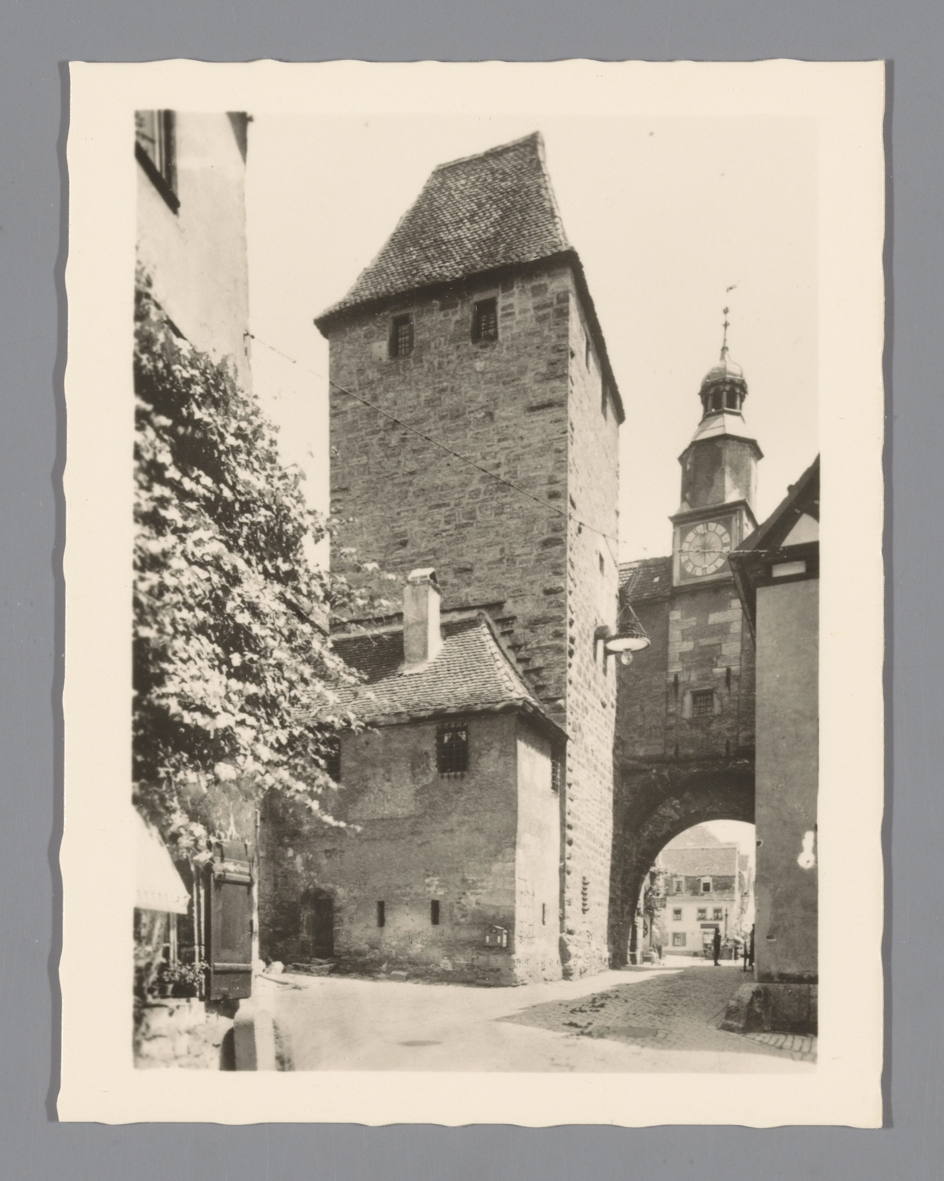 Gezicht op een toren en een poort in Rothenburg ob d...