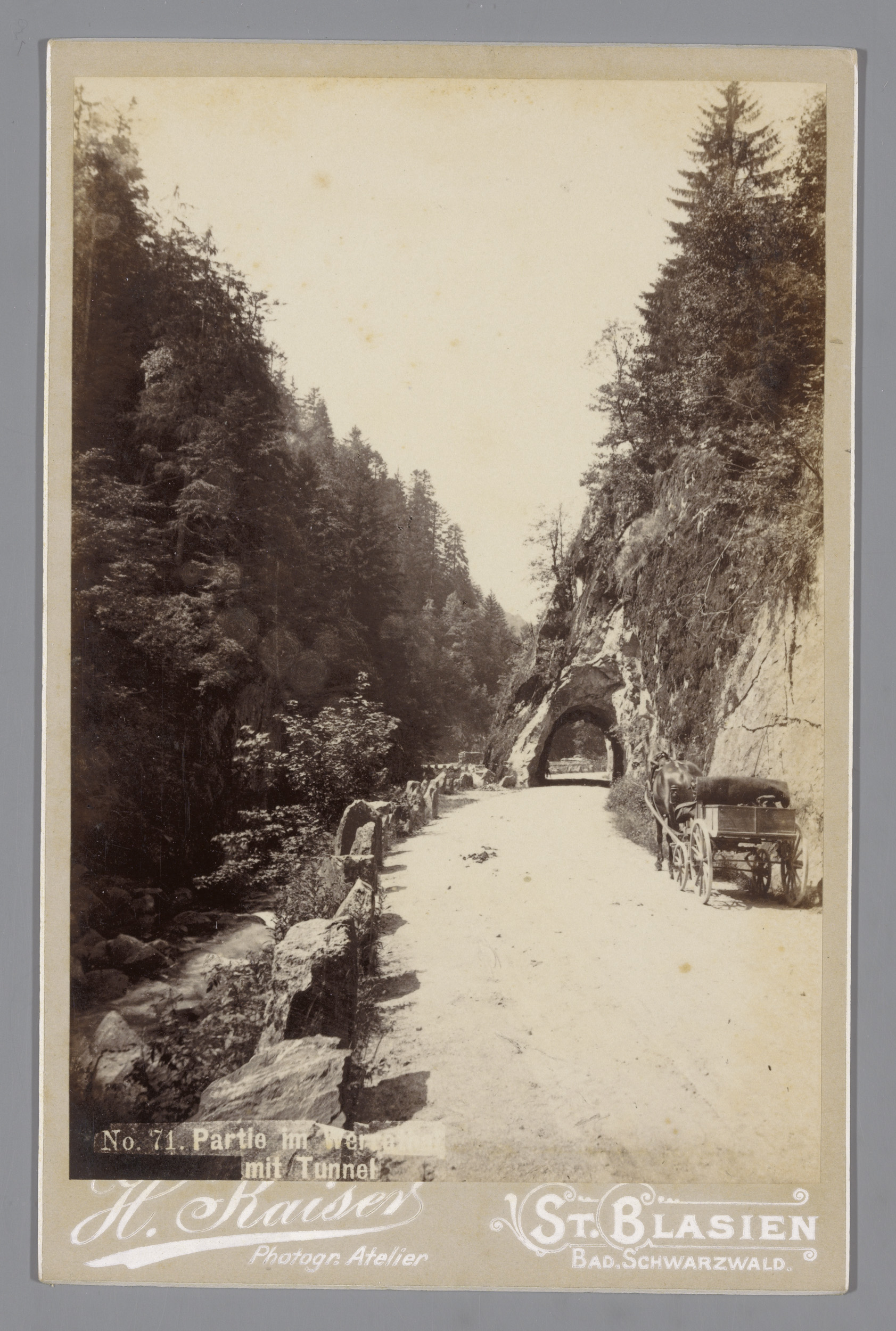 Gezicht op een bergweg, vermoedelijk in het Schwarzwald