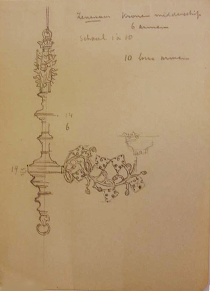 Ontwerpschetsen van de kronen (kroonluchters) van he...