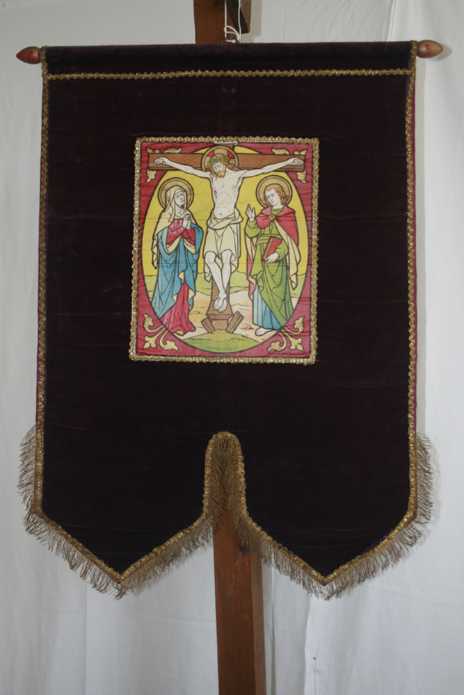 Vaandel met afbeelding van Maria en Johannes bij Jez...