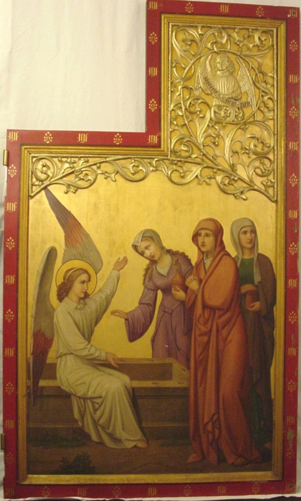 Altaarluik van gepolychromeerd hout voorstellende de...