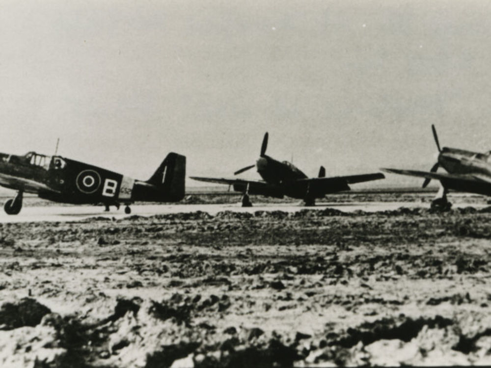 Foto drie P-51 B jachtvliegtuigen in Britse kleuren ...