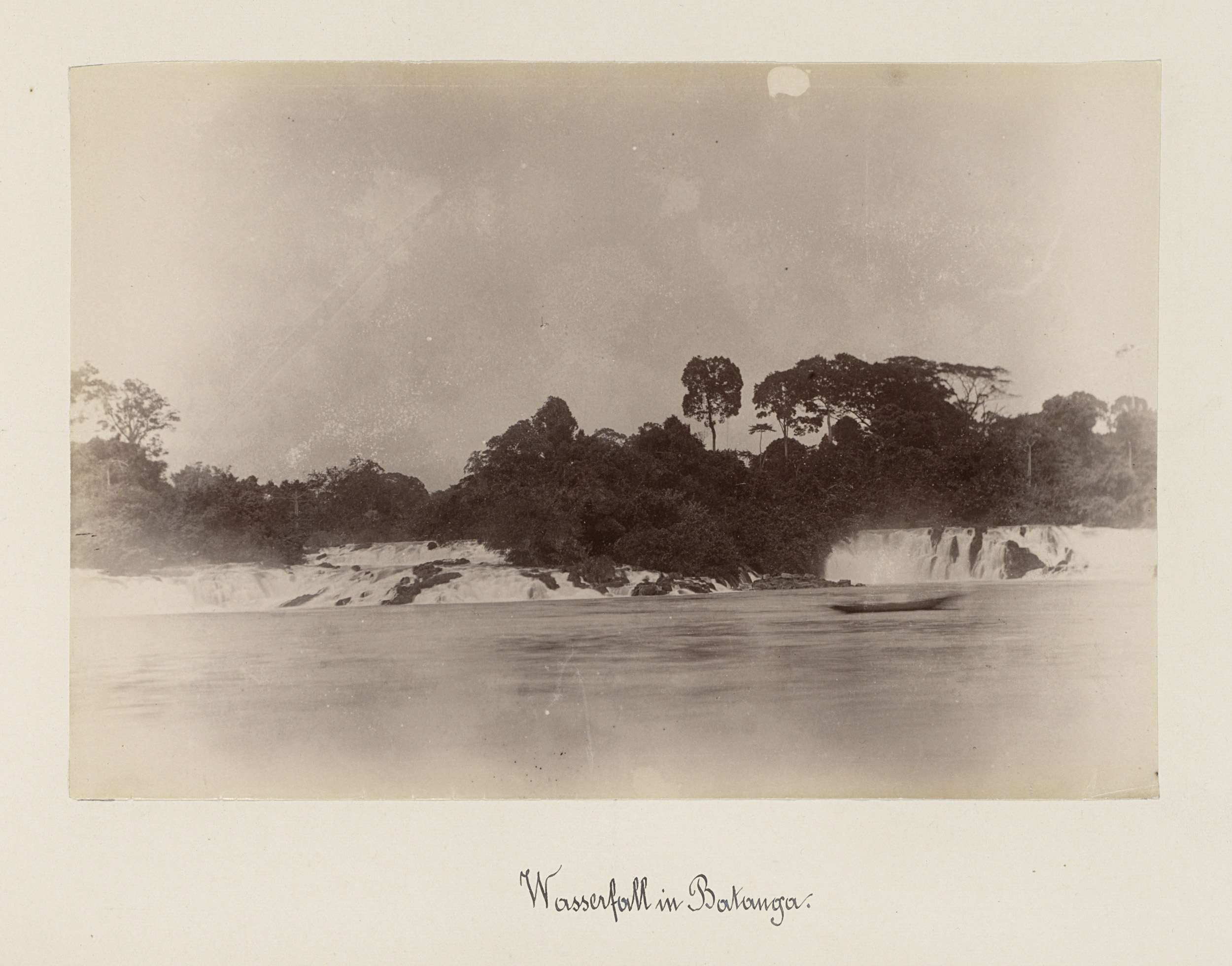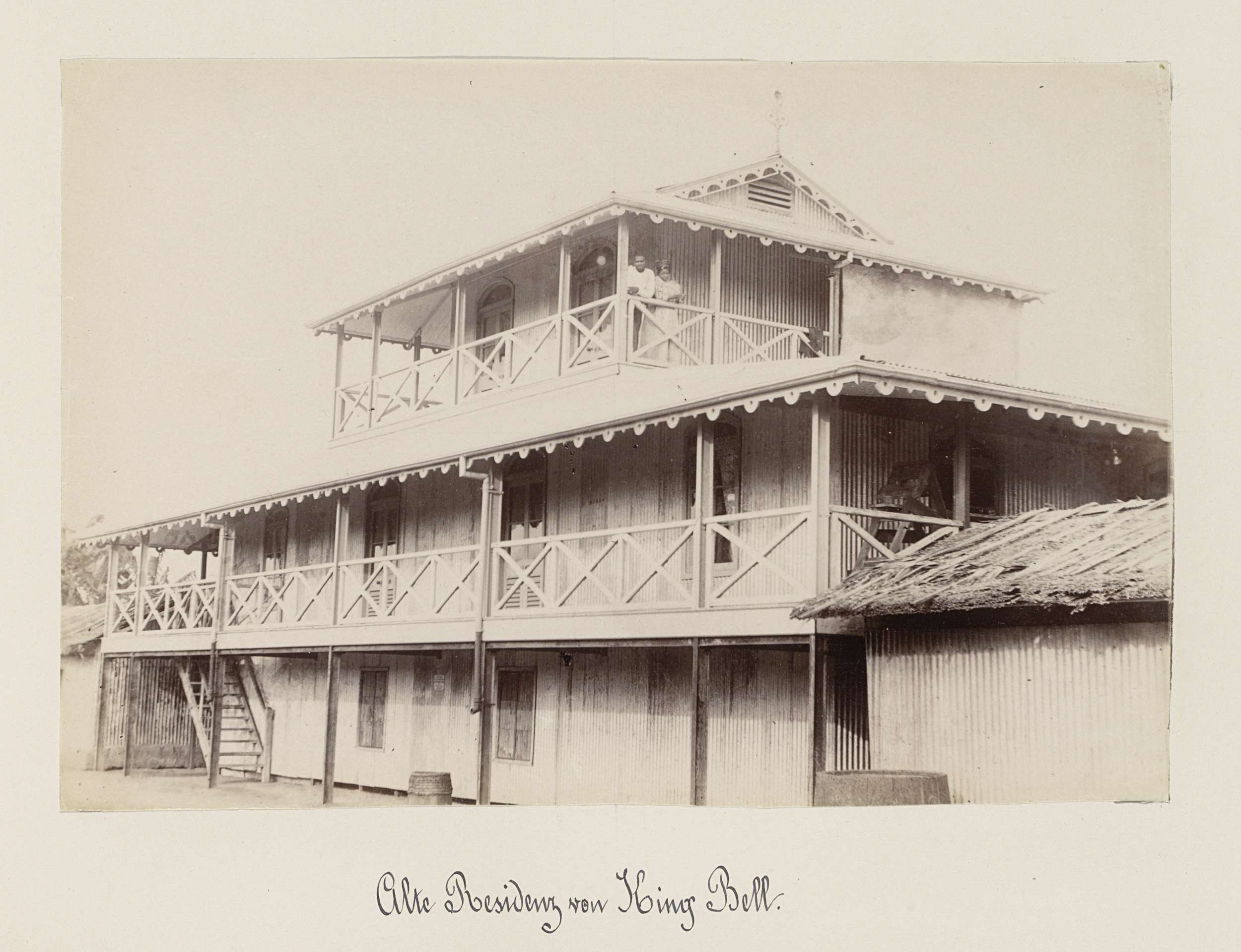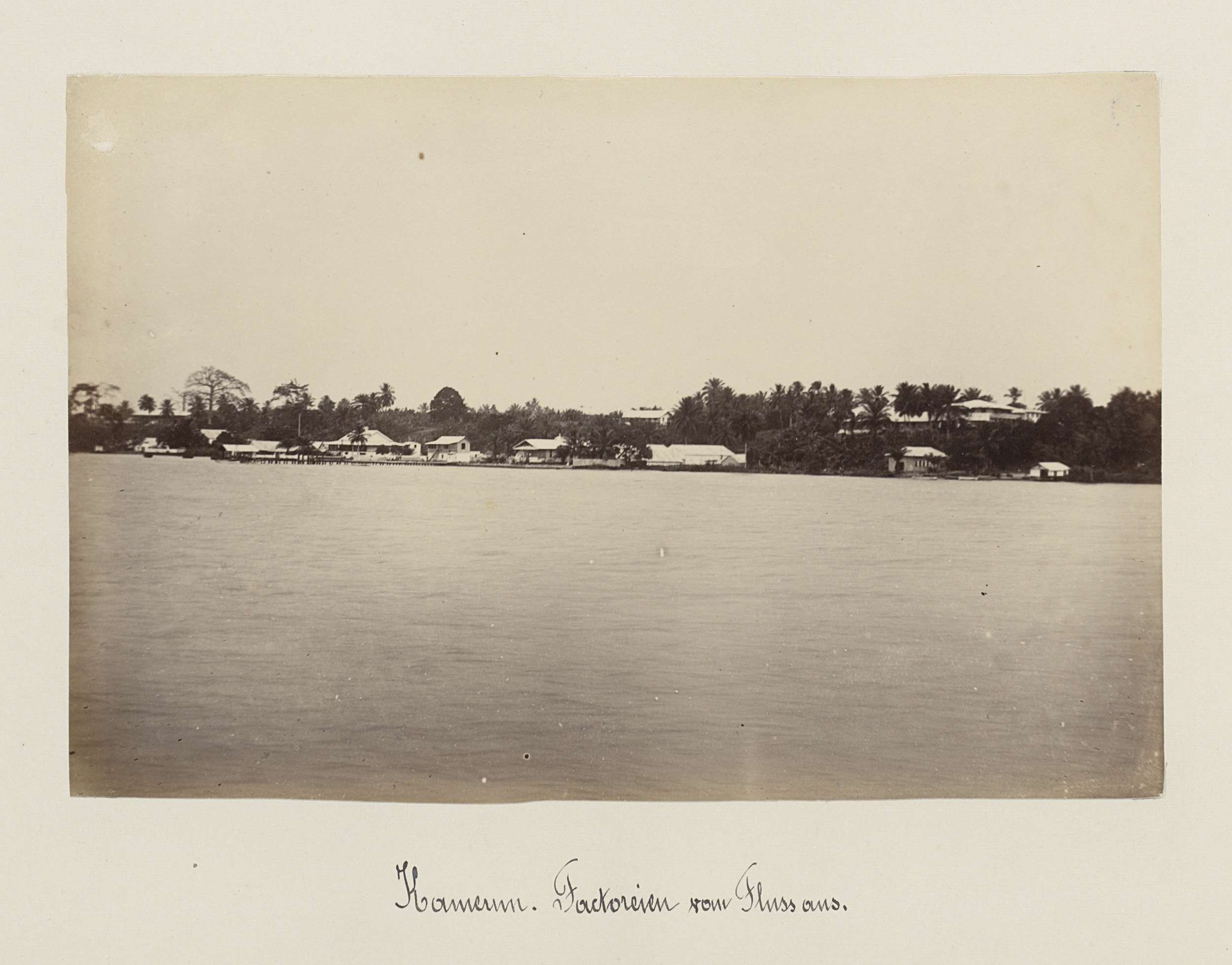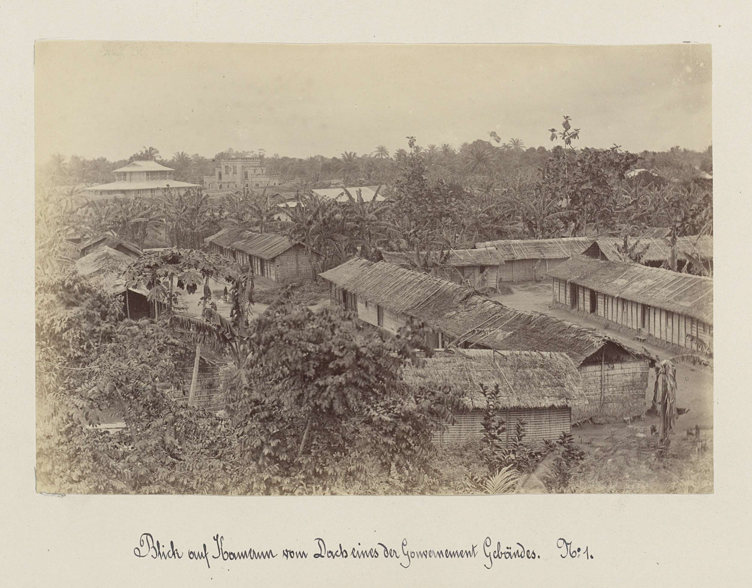 Handelsnederzettingen in Kameroen, gezien vanaf de r...