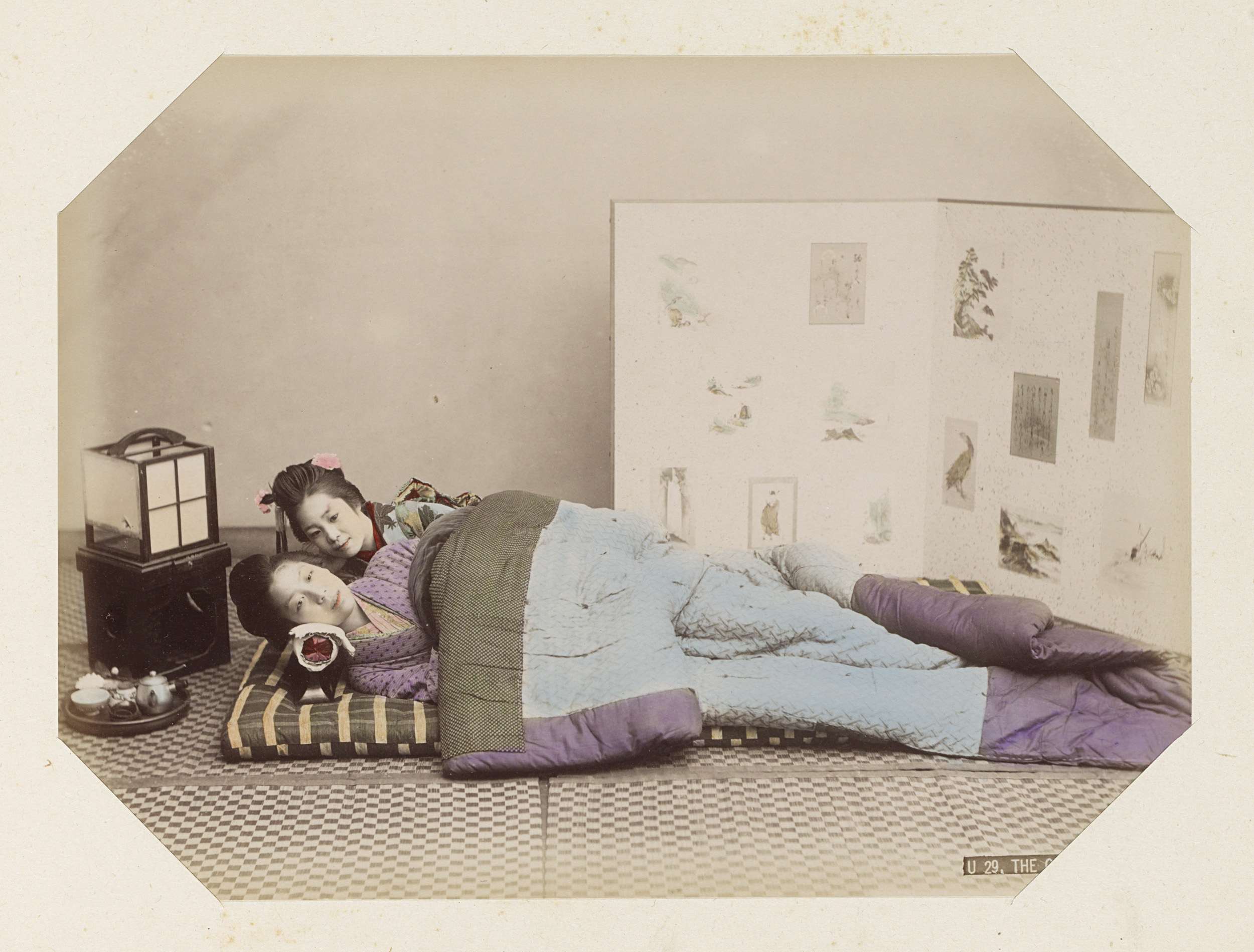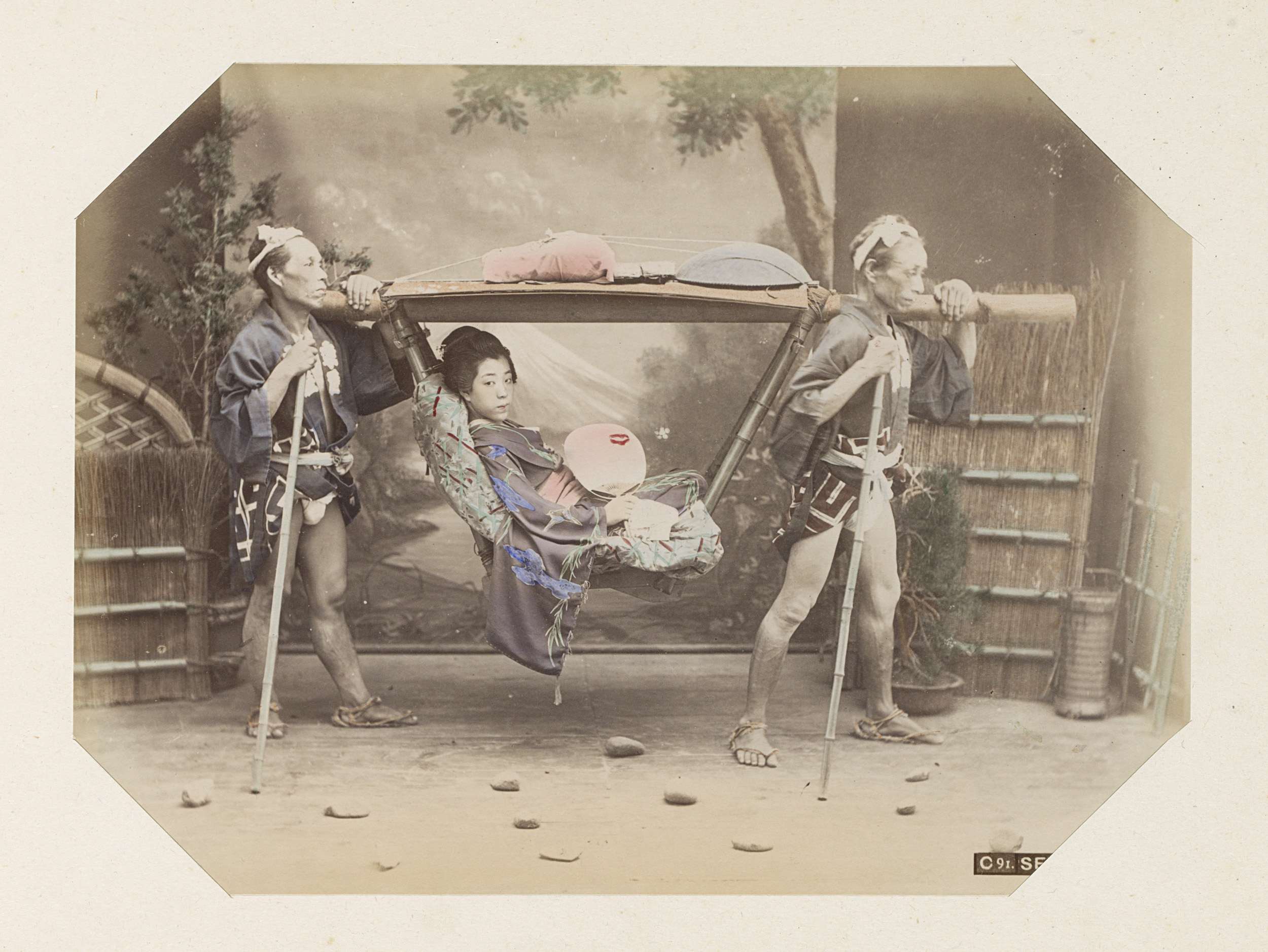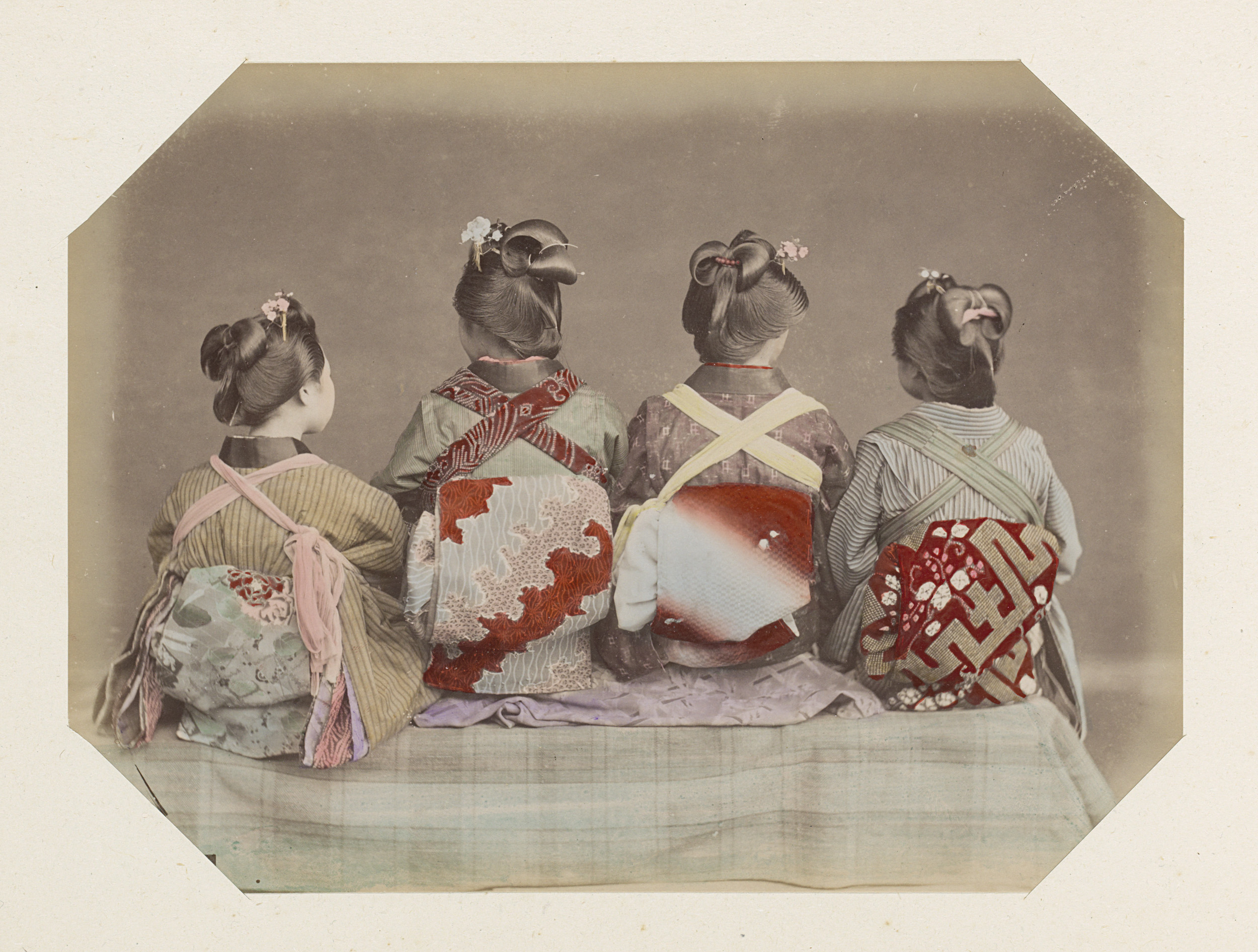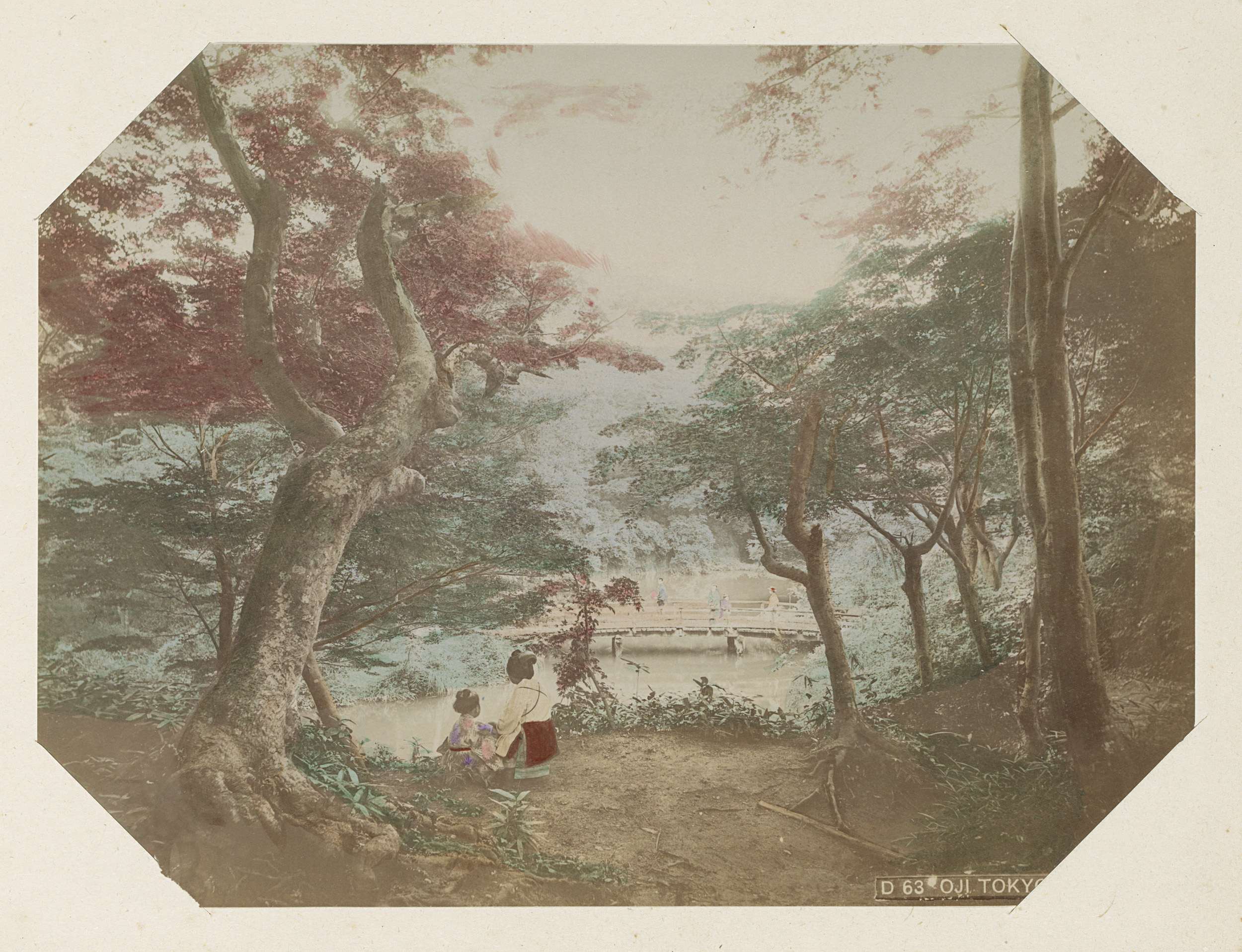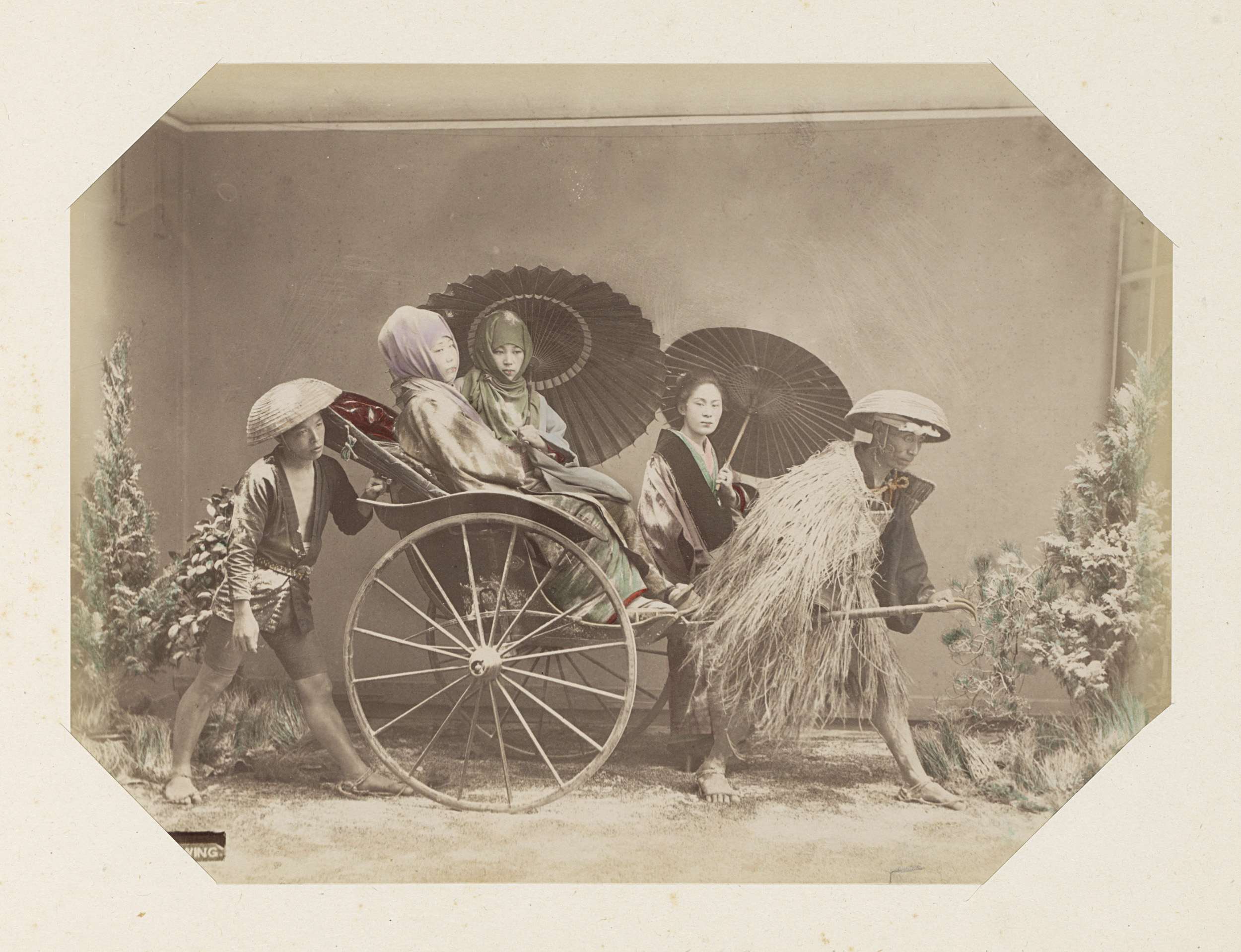 Drie Japanse vrouwen bij een theehuis in het Suwapar...