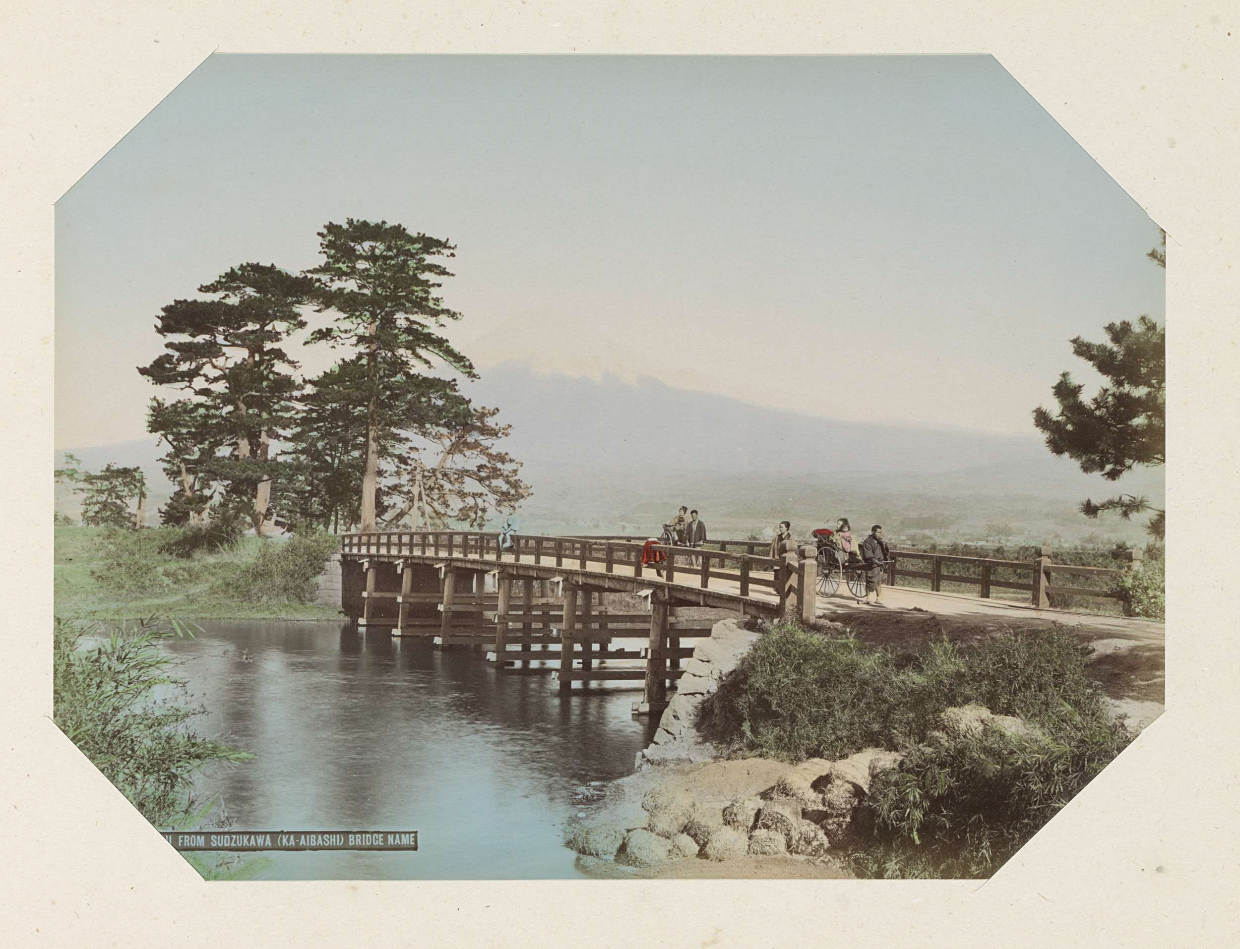 Berg Fuji gezien vanaf de Ka-Aibashibrug in Japan
