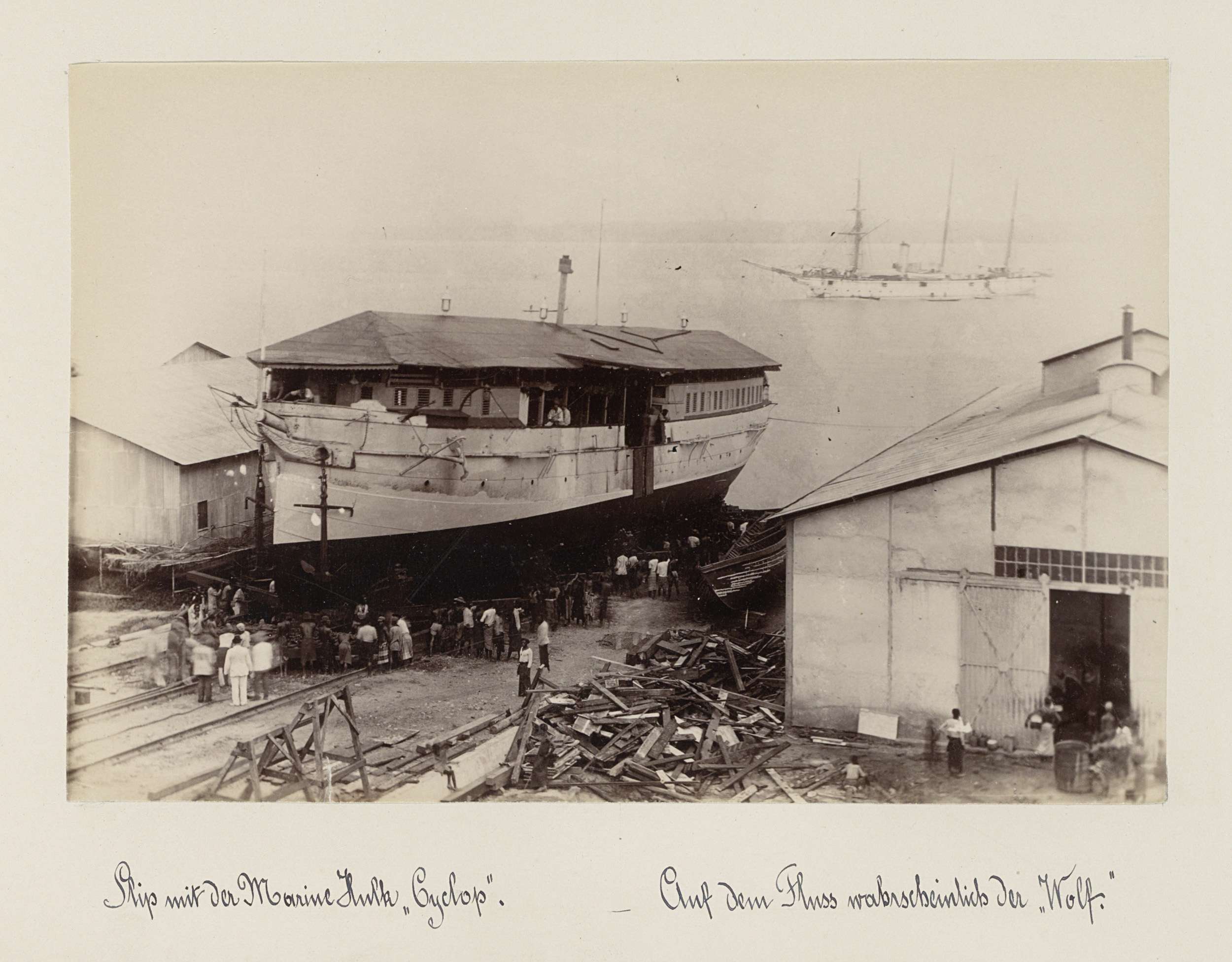 Scheepshelling in Kameroen met de schepen 'Cyclop' e...