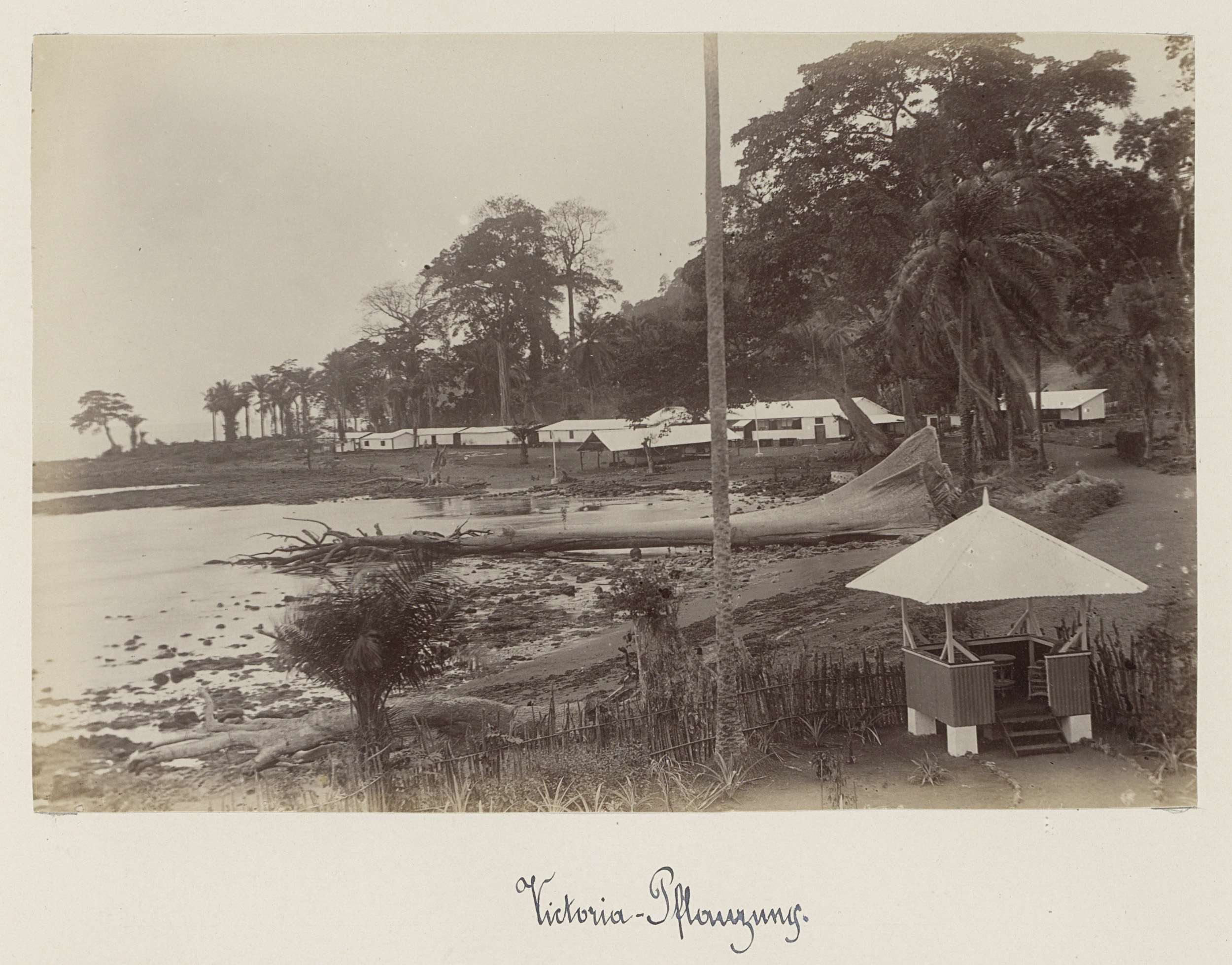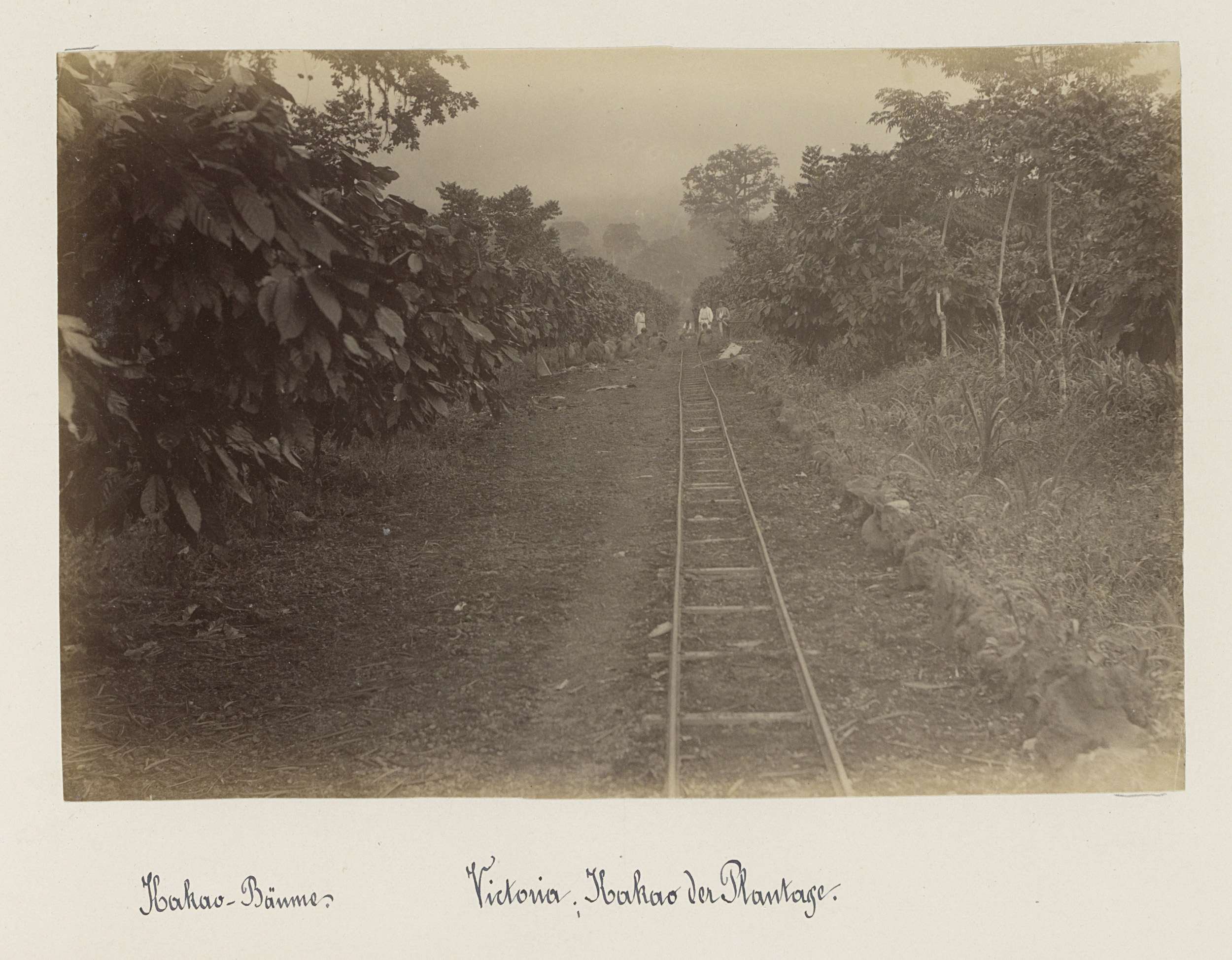 Plantage in Victoria (Kameroen) met spoorrails te mi...