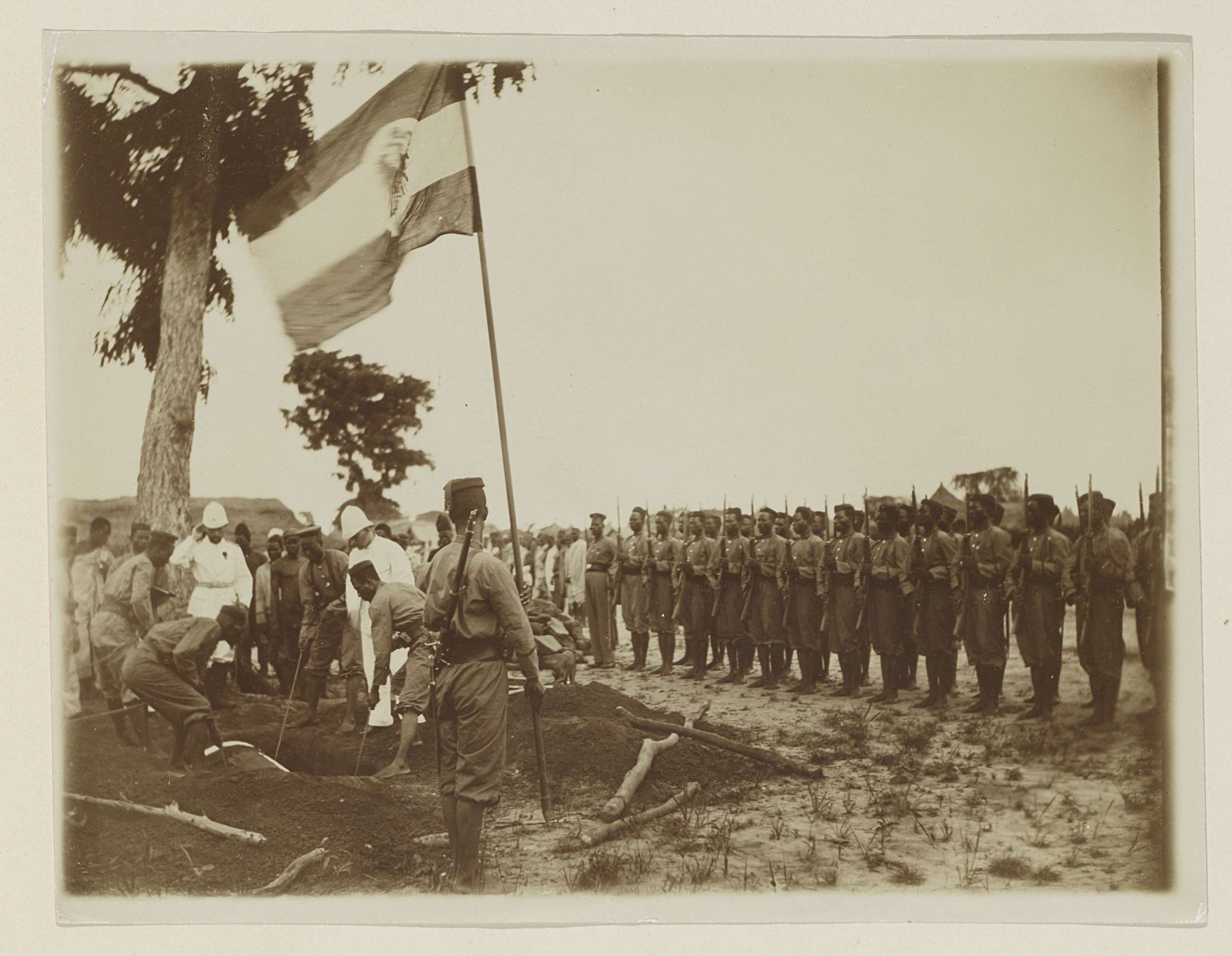 Militaire begrafenis met Afrikaanse erewacht, vlag e...