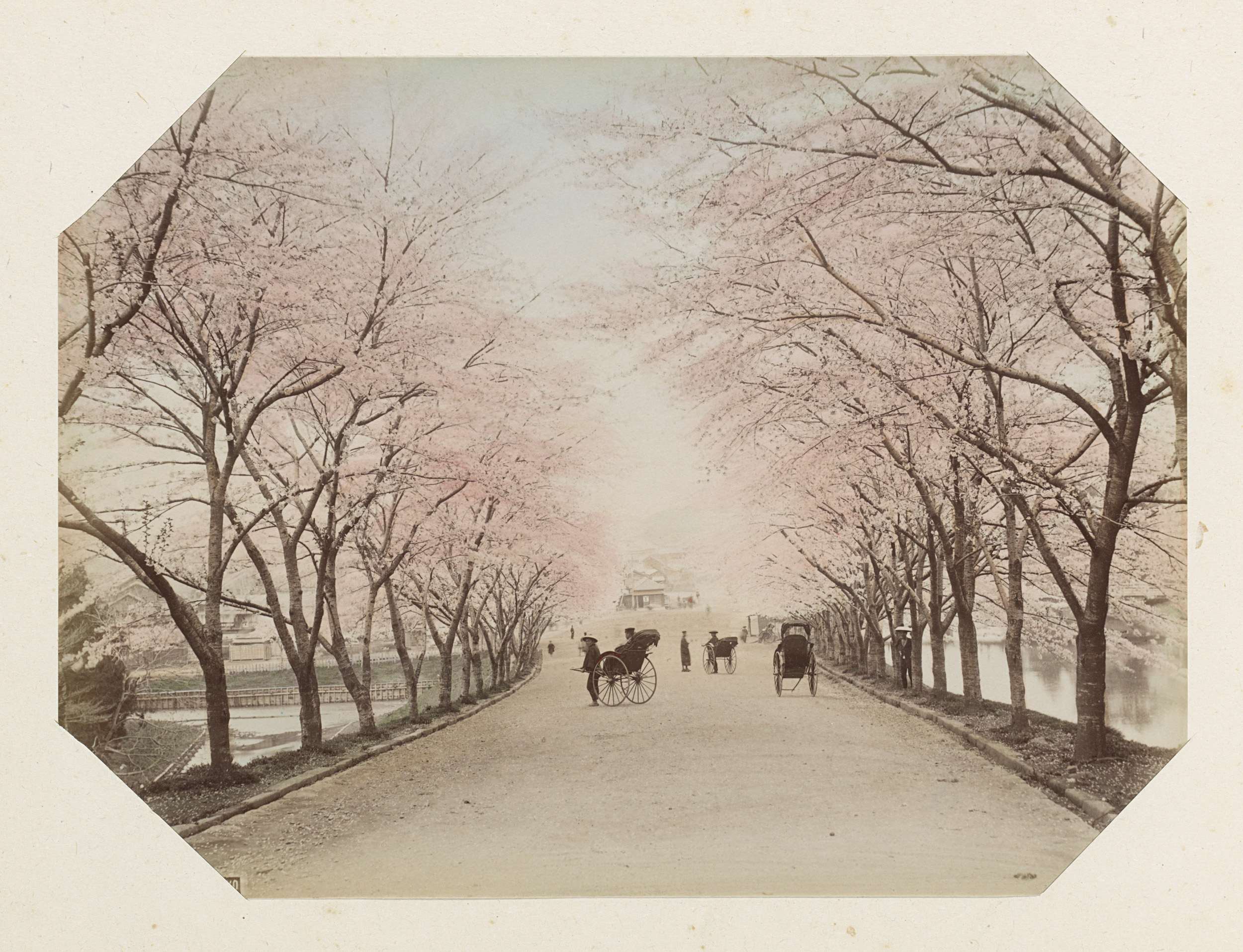 Laan met bomen in bloesem in Akasaka bij Tokyo